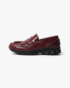 ・クロコ型押しのエナメル素材とパーツを組み合わせたアッパー