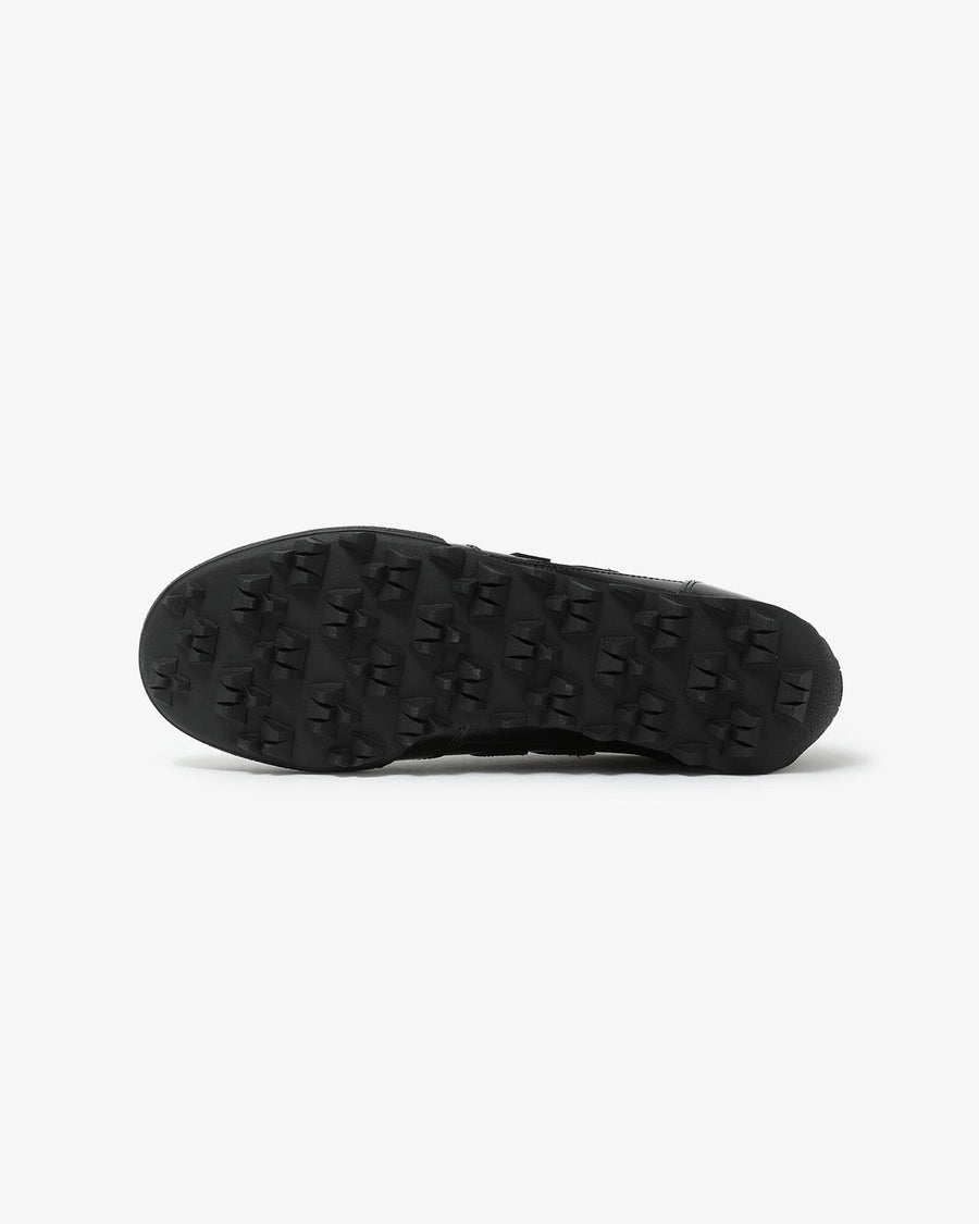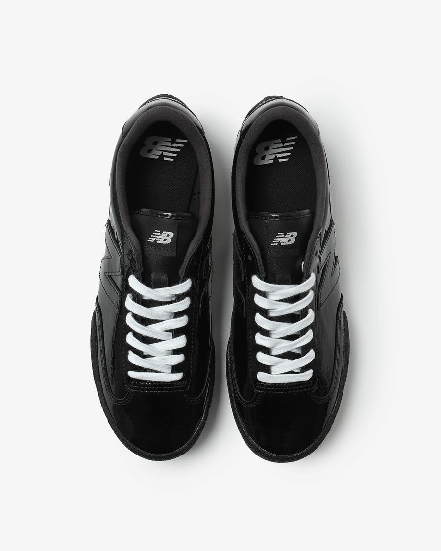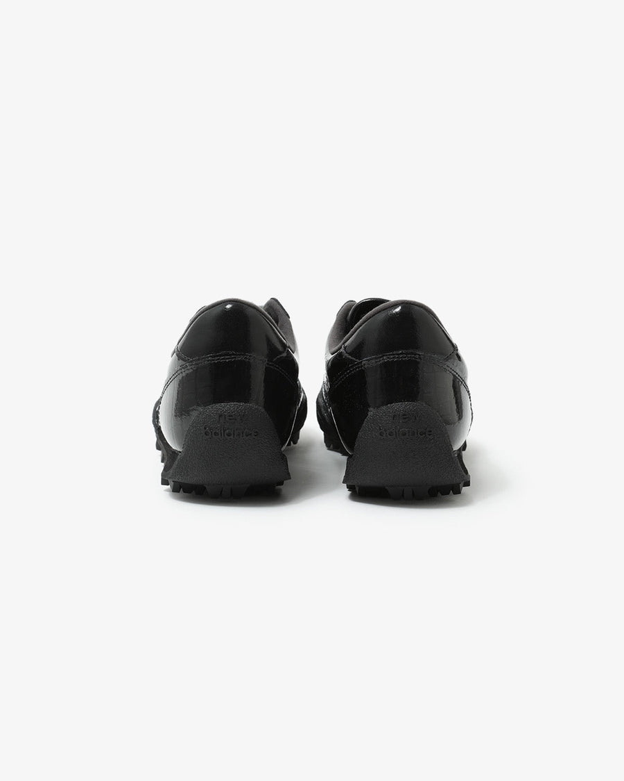 クロコダイルパターンを施したブラックのエナメルレザーアッパーがロープロファイルなシルエットを際立たせ、洗練された高級感を演出しています。