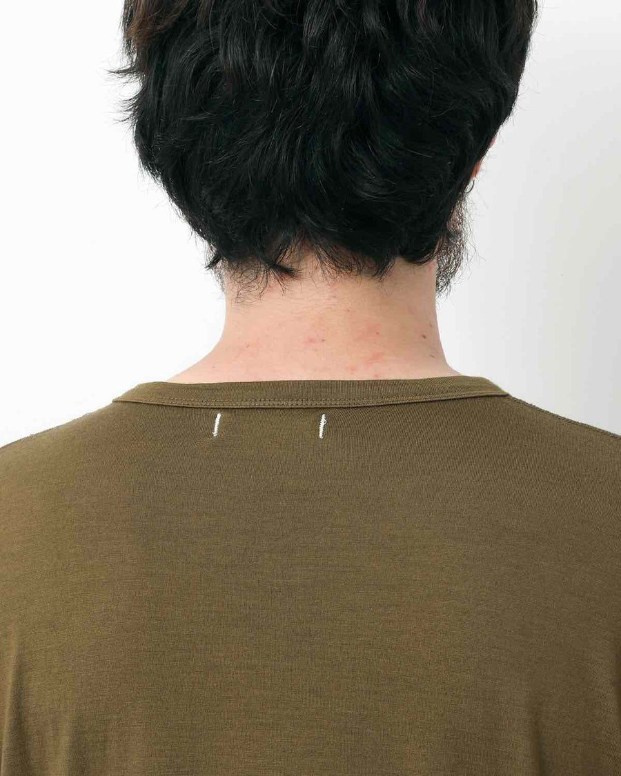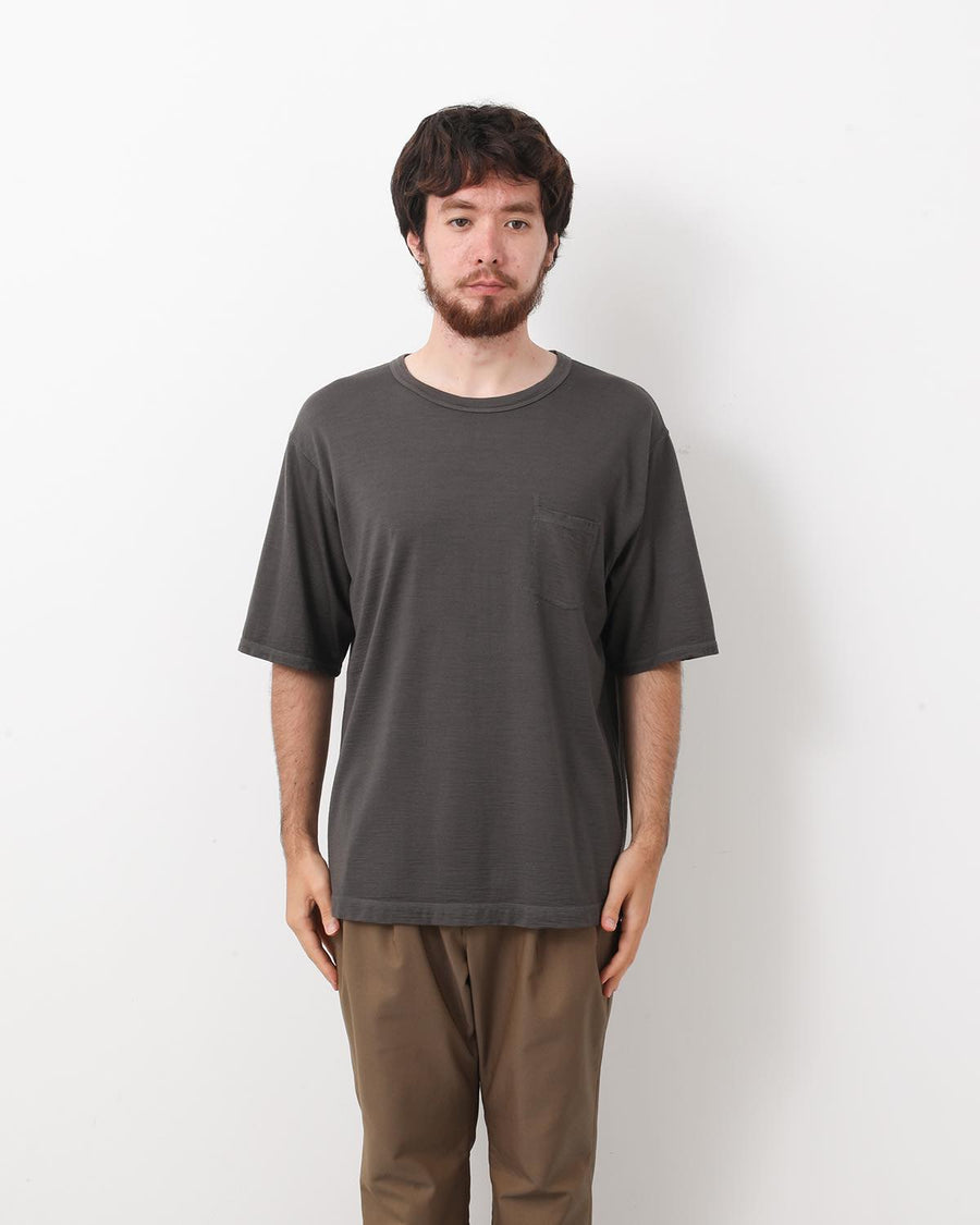 AUTUMN & WINTER 2025 COLLECTIONより、製品染め加工を施したSUPER 140メリノウール天竺を使用した、クルーネックのショートスリーブカットソーです。