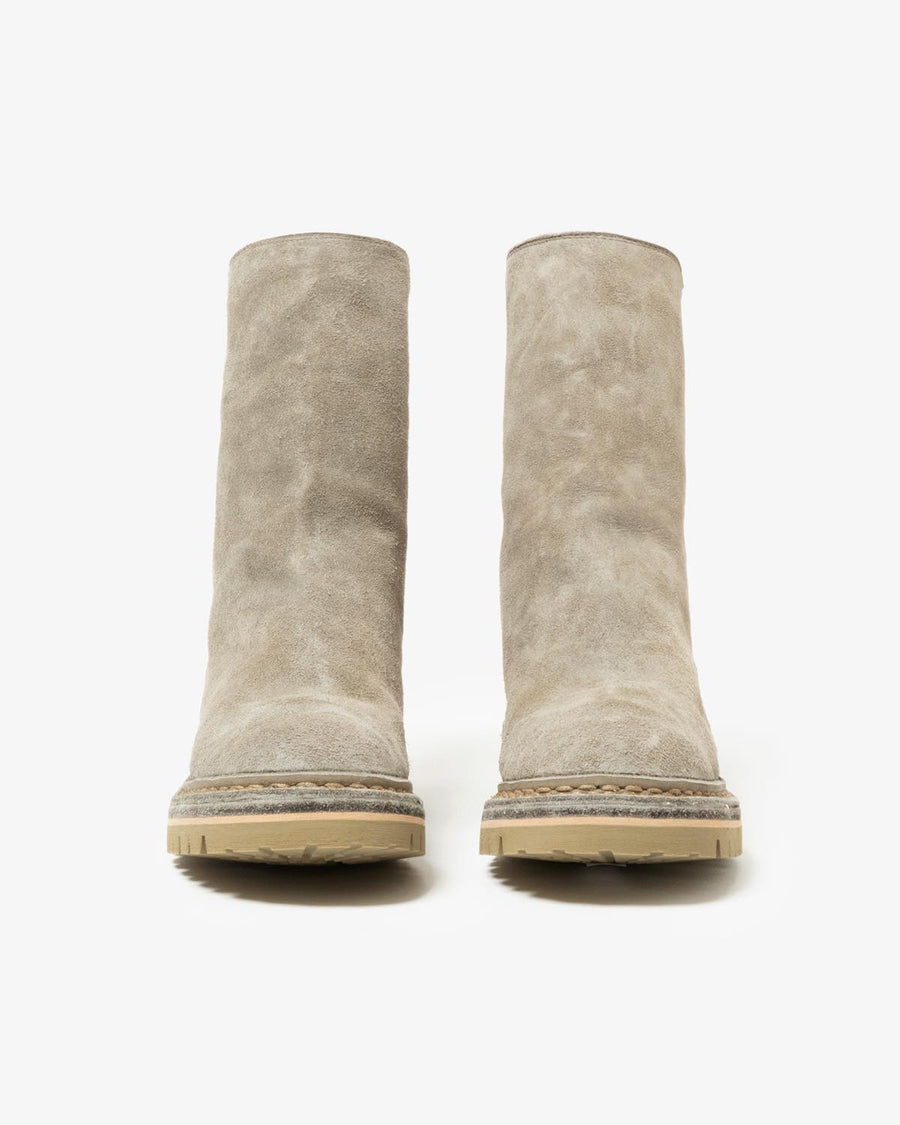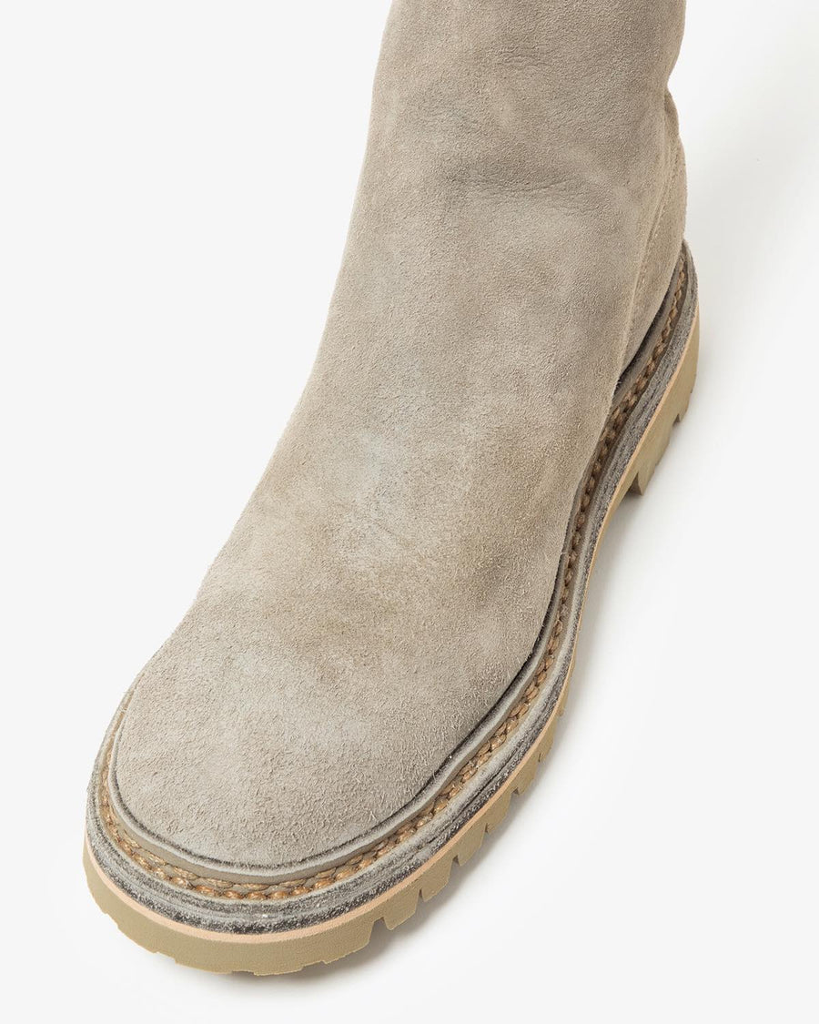 ノルウィージャン製法によって、アッパーのスエード素材を手縫いでコバに留めていき、ボリュームのある見た目にアップデート、ソールには厚みのある〈Vibram〉ソールを組み合わせ、インラインモデルにはない新鮮なシルエットを実現しています。