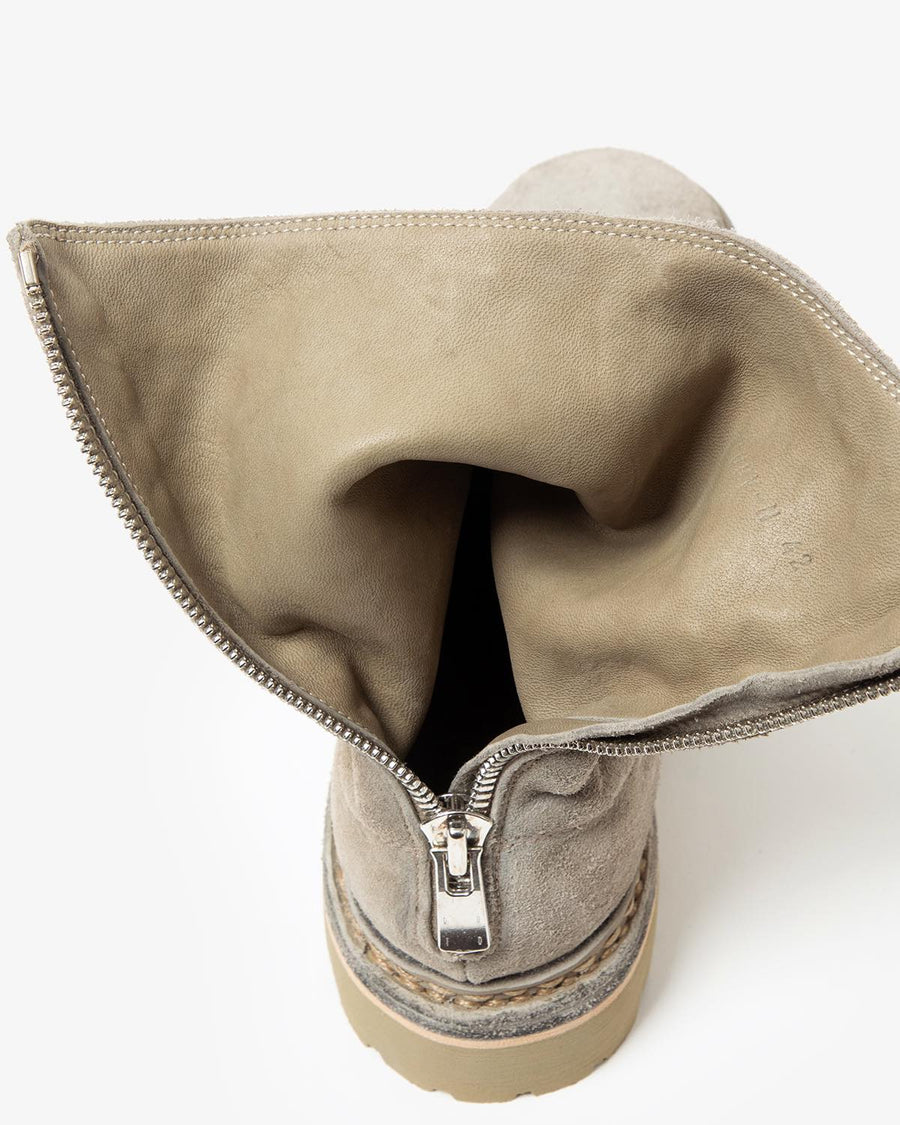 〈GUIDI〉のインラインで展開されるバックジップ仕様のブーツ「788V BABY BUFFALO REVERSE」をベースに制作された、両ブランド最初のコラボレーションモデルが、新たなカラーで登場です。