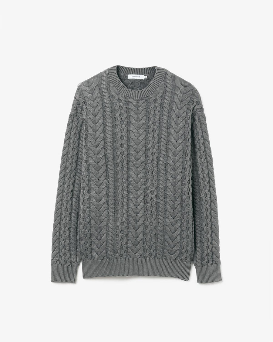 AUTUMN & WINTER 2025 COLLECTIONより、コットン糸をローゲージでケーブル編みにしたクルーネックのプルオーバーニットです。