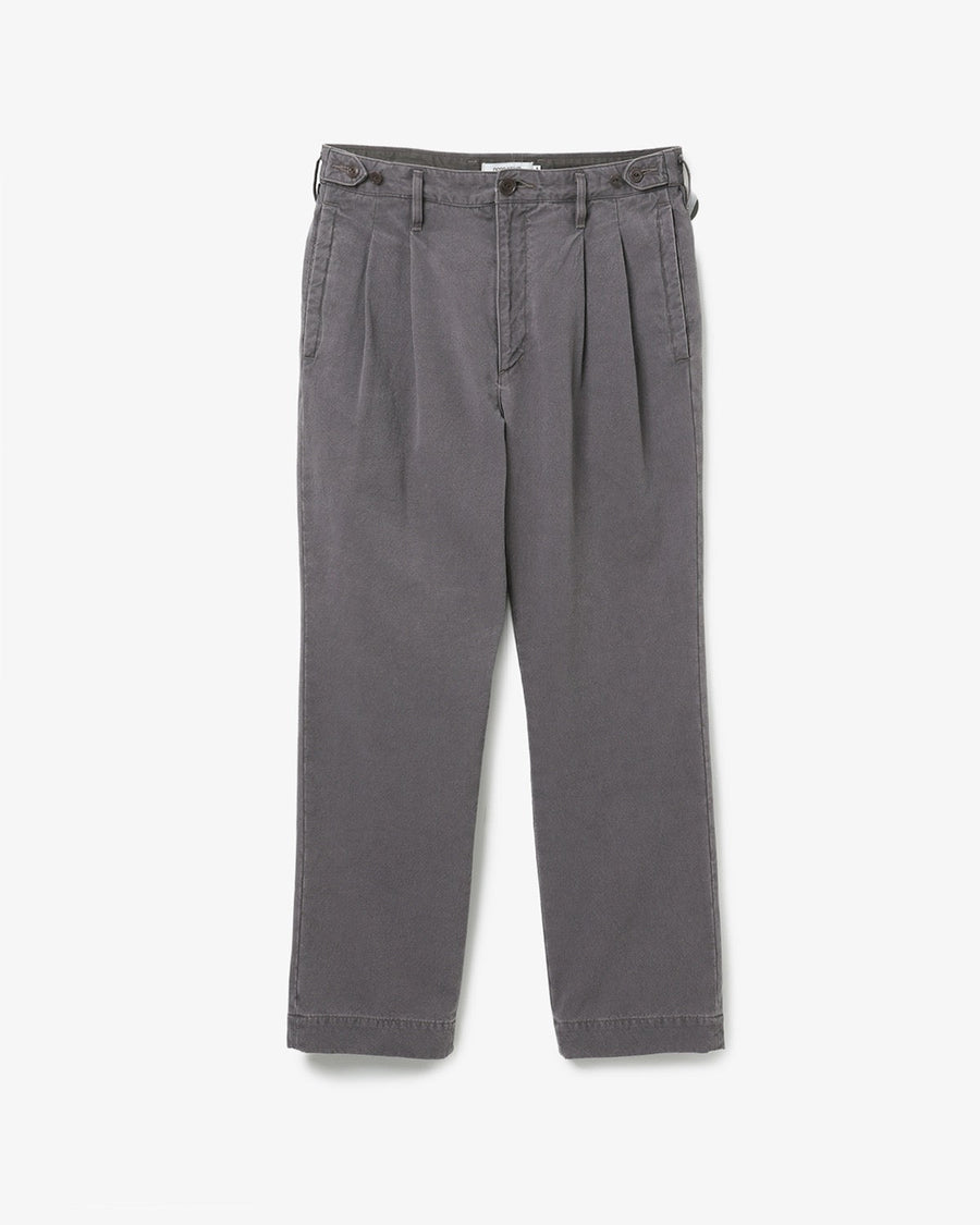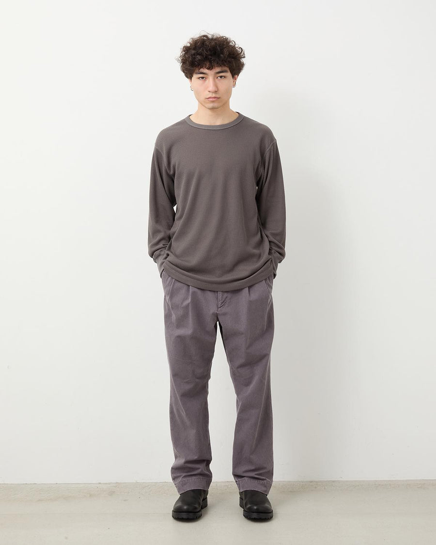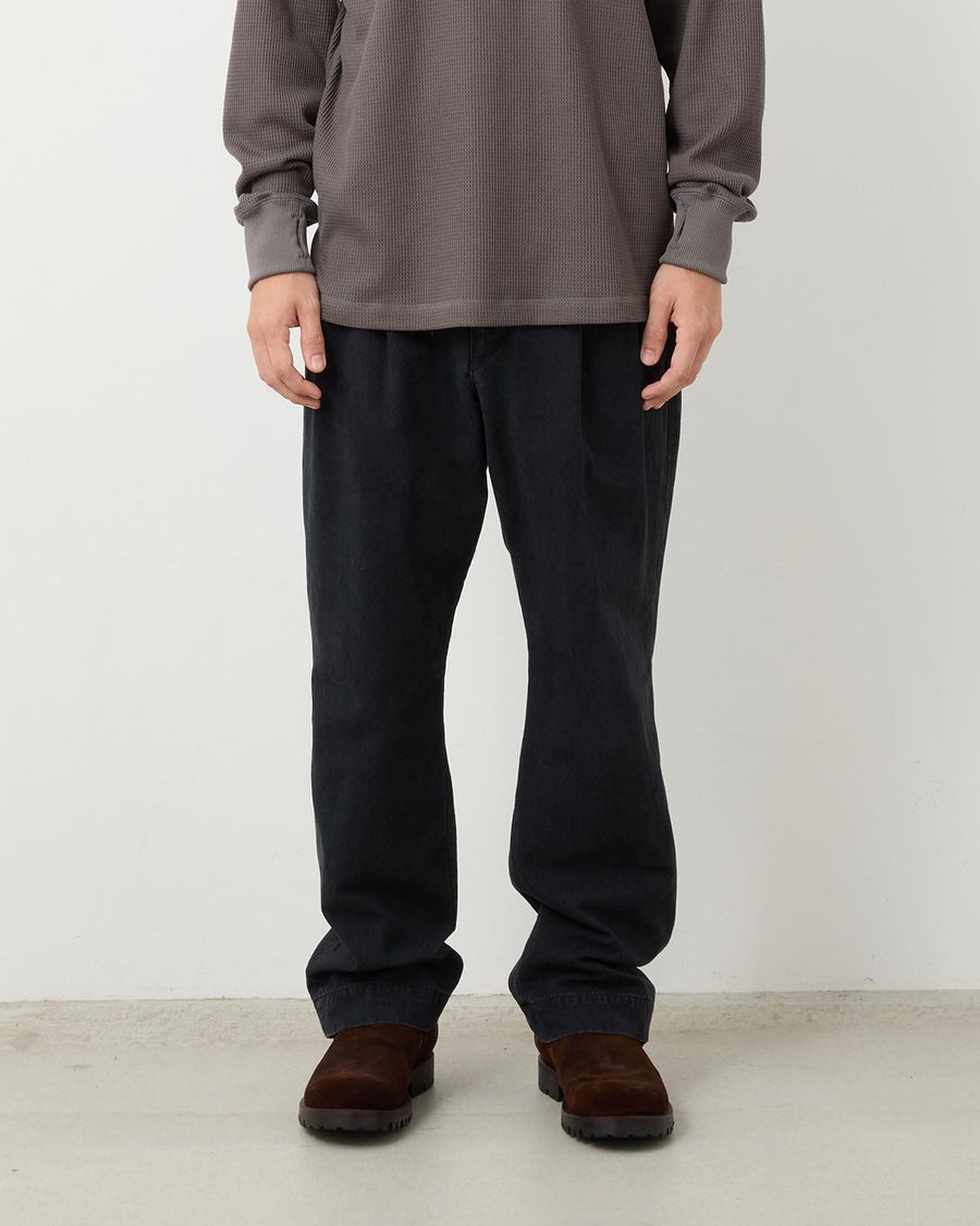 AUTUMN & WINTER 2025 COLLECTIONより、加工を施したキャンバス素材を使用した2タックのチノトラウザーです。