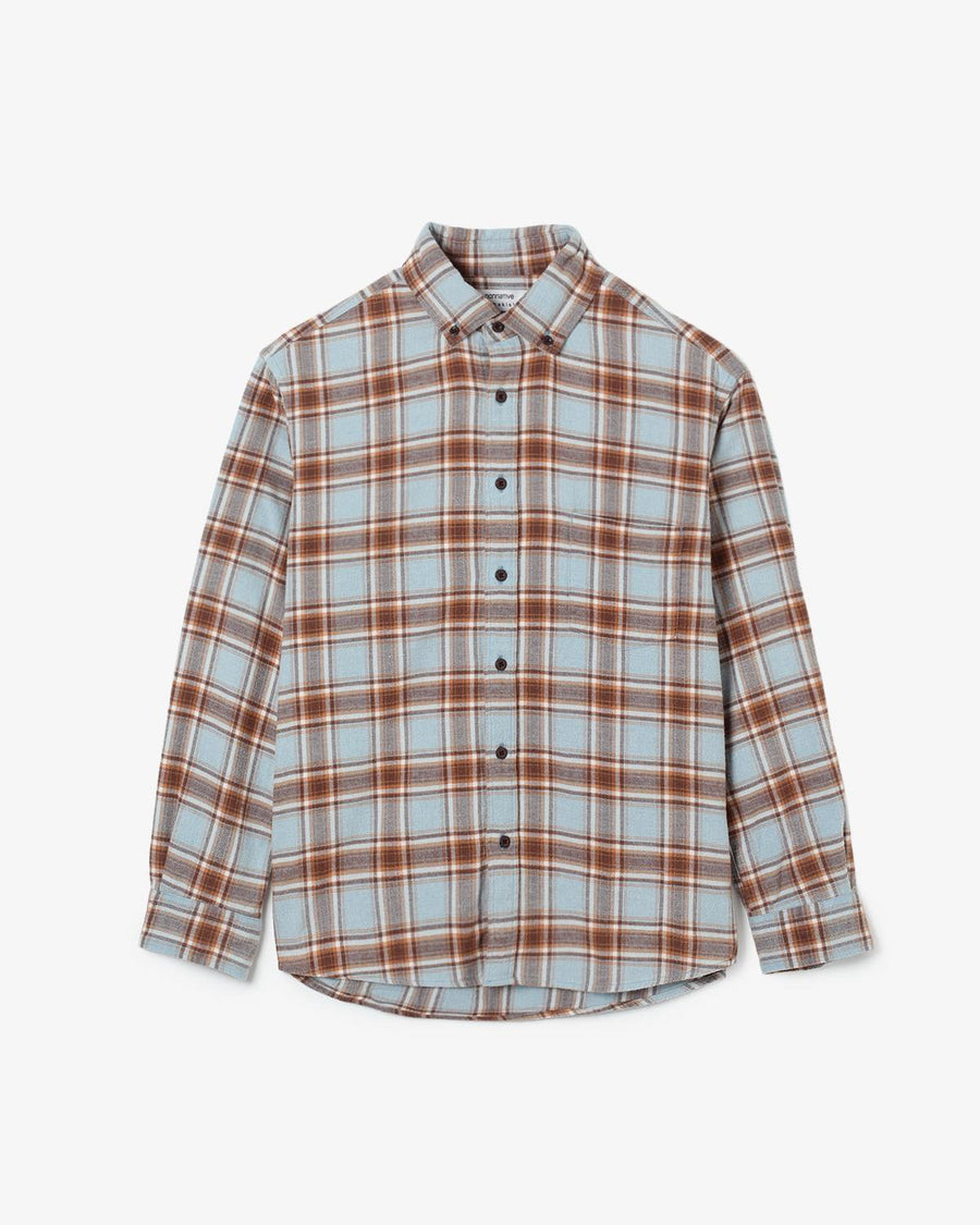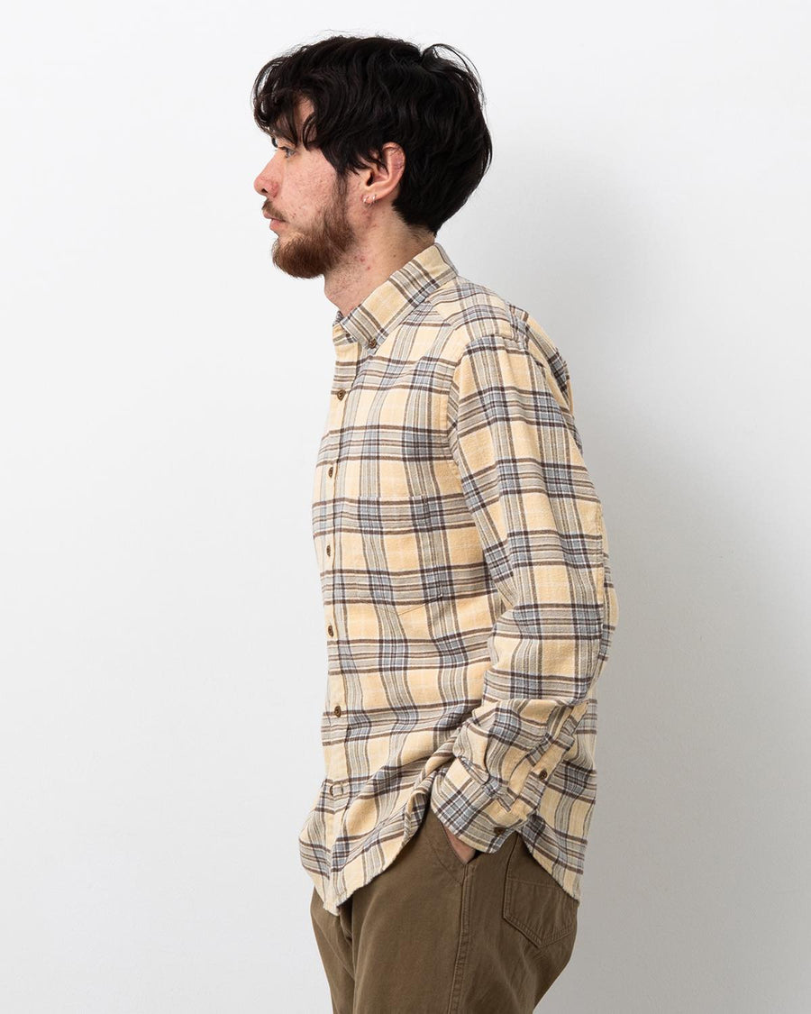 フェードしたような淡いトーンのコットンフランネルを使用した「DWELLER B.D. SHIRT COTTON FLANNEL TARTAN CHECK」です。