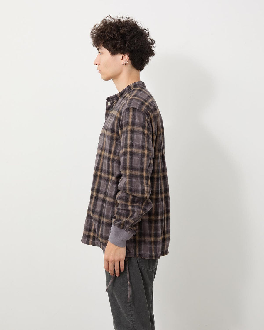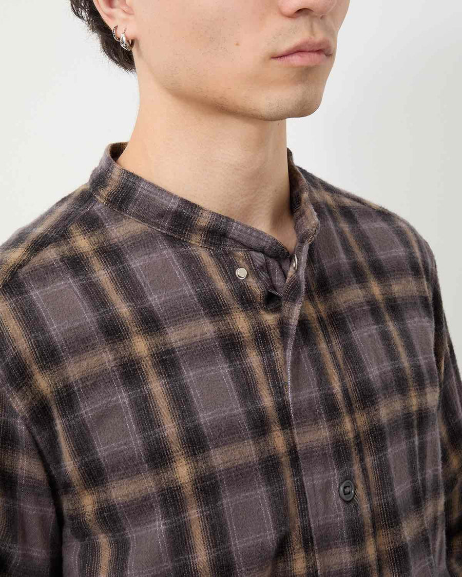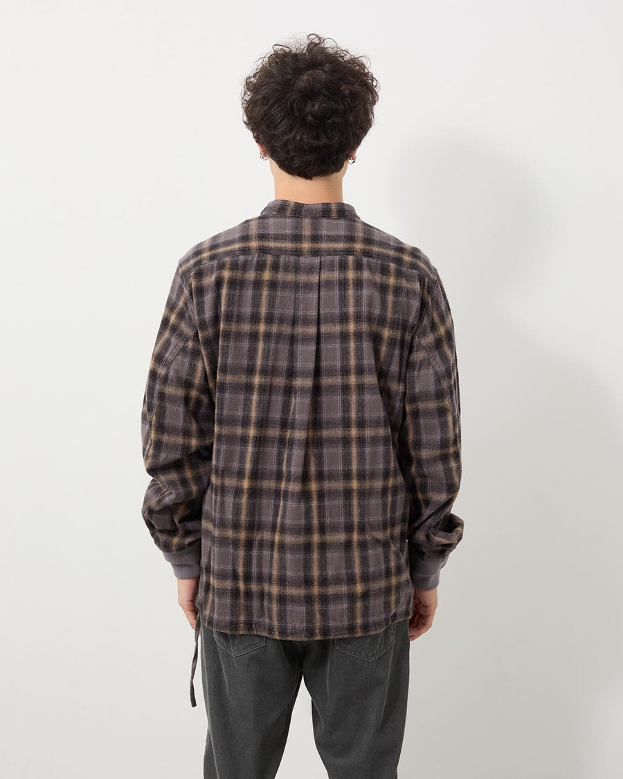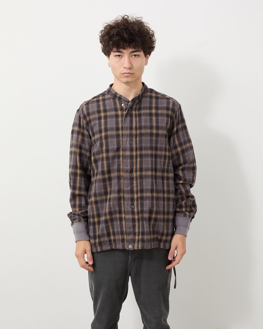 AUTUMN & WINTER 2025 COLLECTIONより、起毛感のあるコットンフランネル素材を使用した、スタンドカラーのシャツジャケットです。