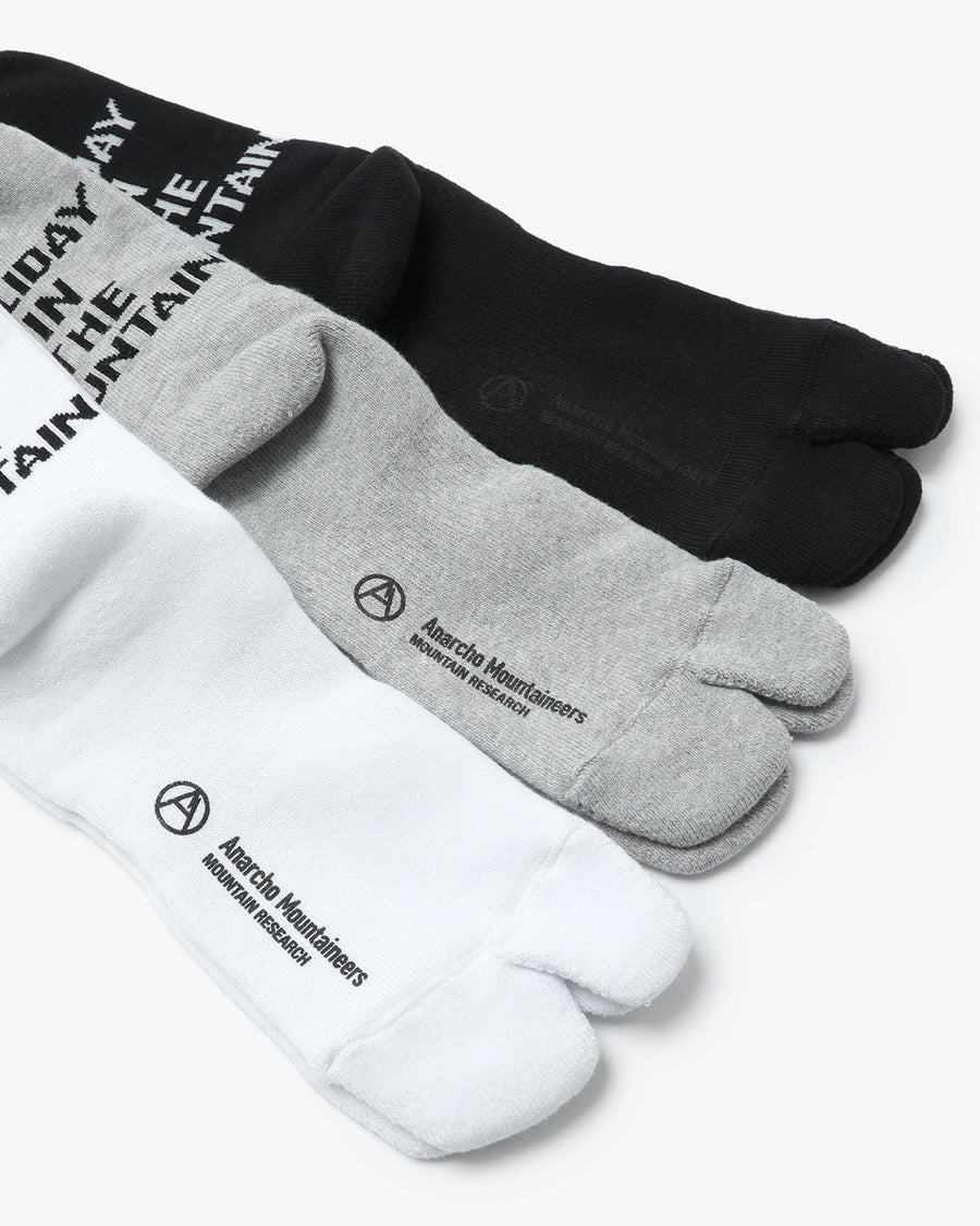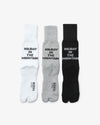 レッグ部分に“H.I.T.M.”の文字をジャカード編みであしらったタビソックスです。