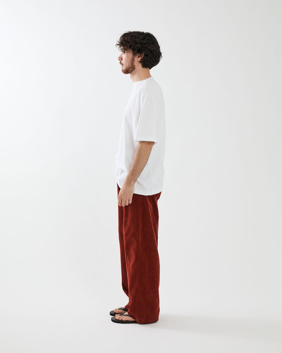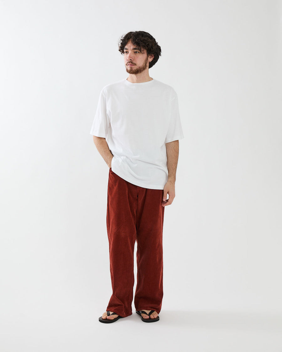 エジプト産の超長綿であるフィンクスコットンを使用したコーデュロイ素材に、製品染め加工を施したトラウザーズです。