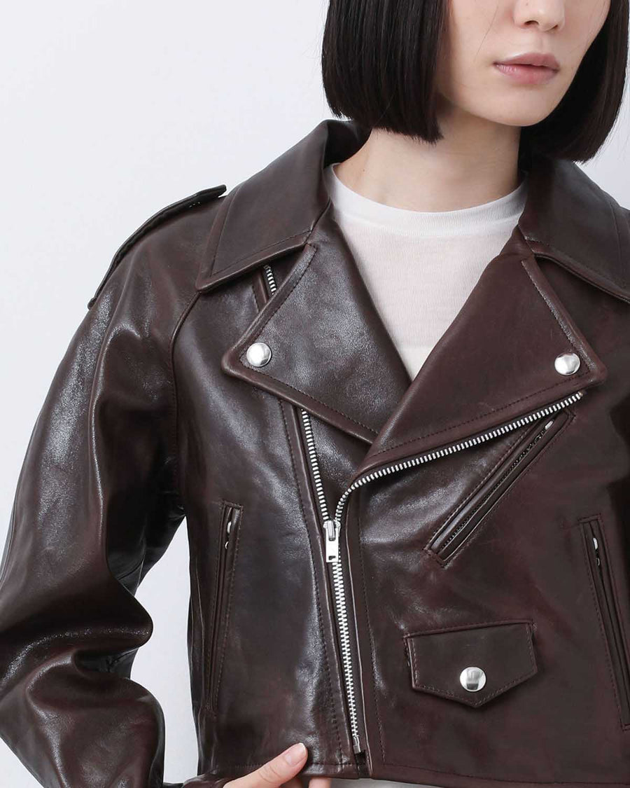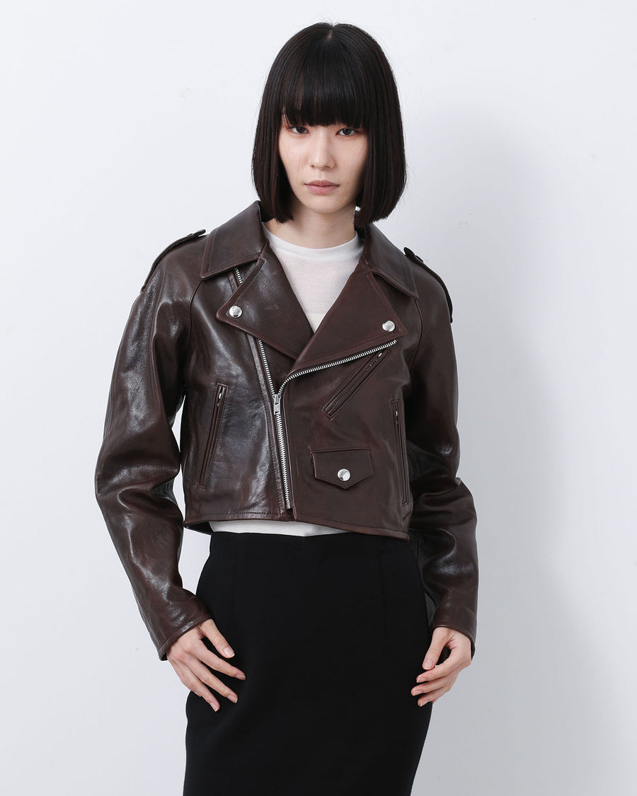 AURALEE HEAVY LAMB LEATHER CROPPED RIDERS JACKET (WOMEN'S)