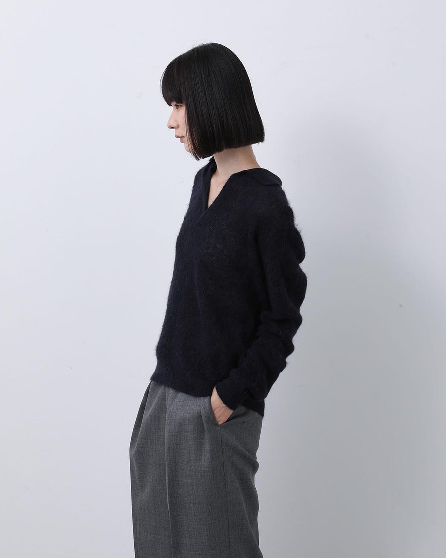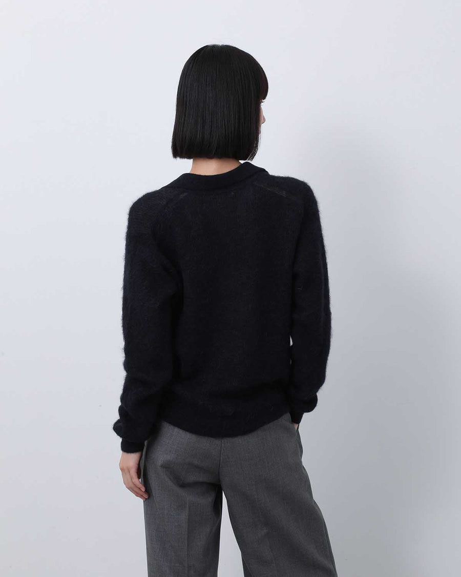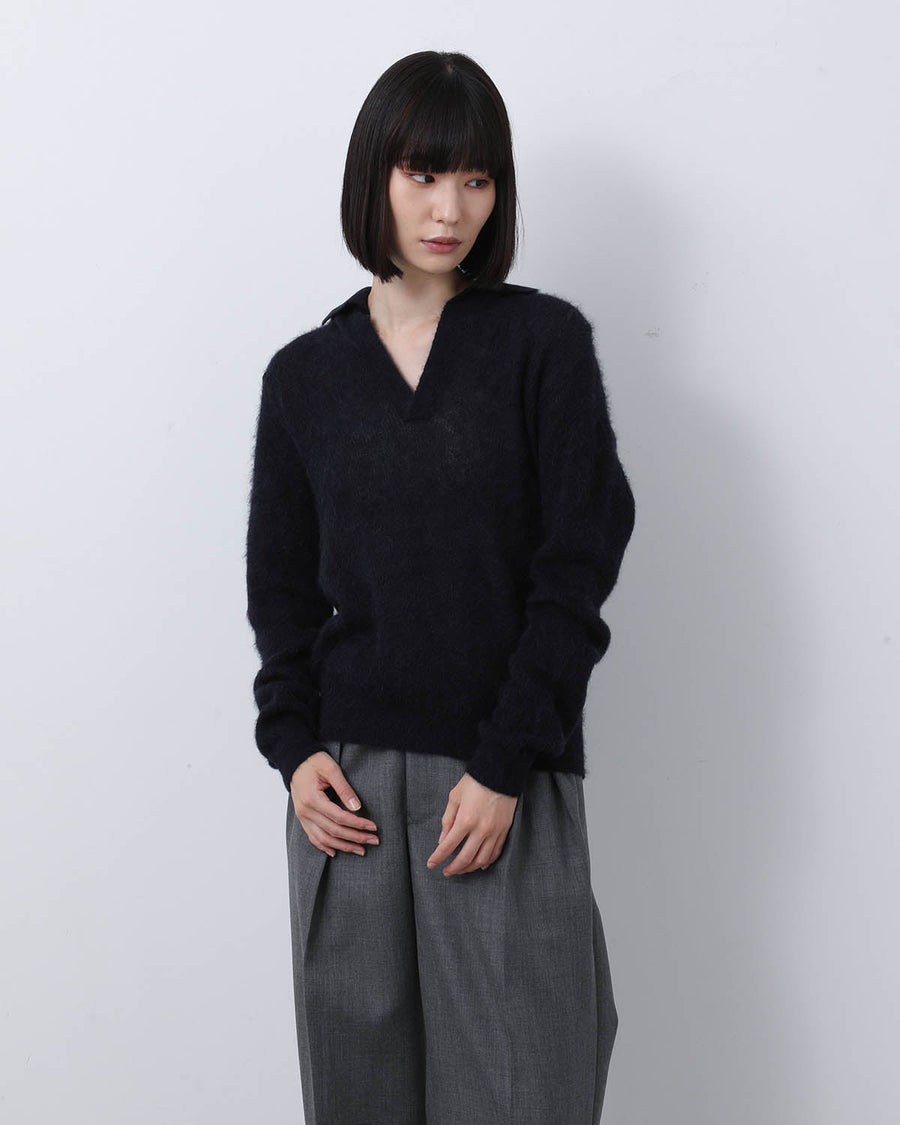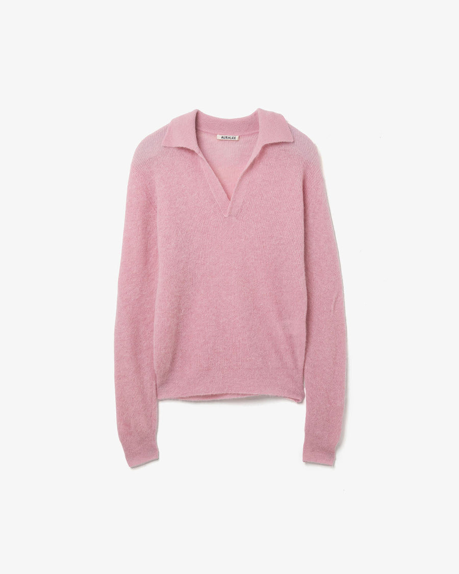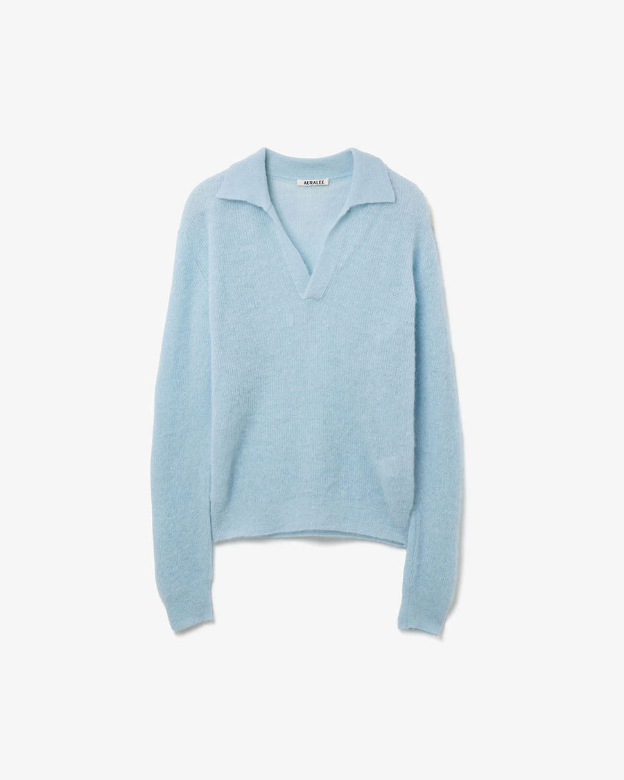 AURALEE BABY SURI ALPACA SHEER KNIT SKIPPER POLO