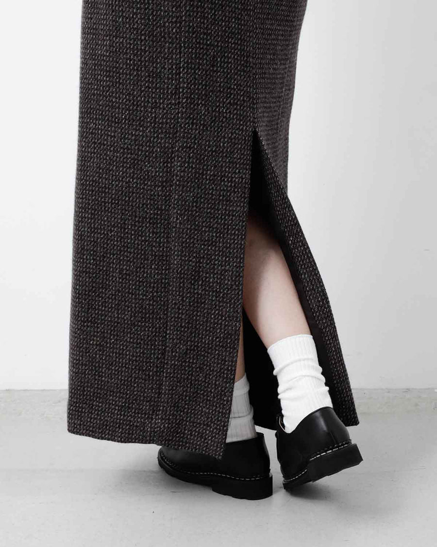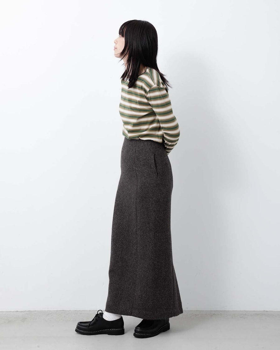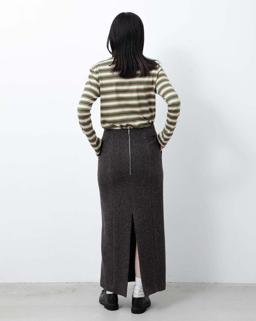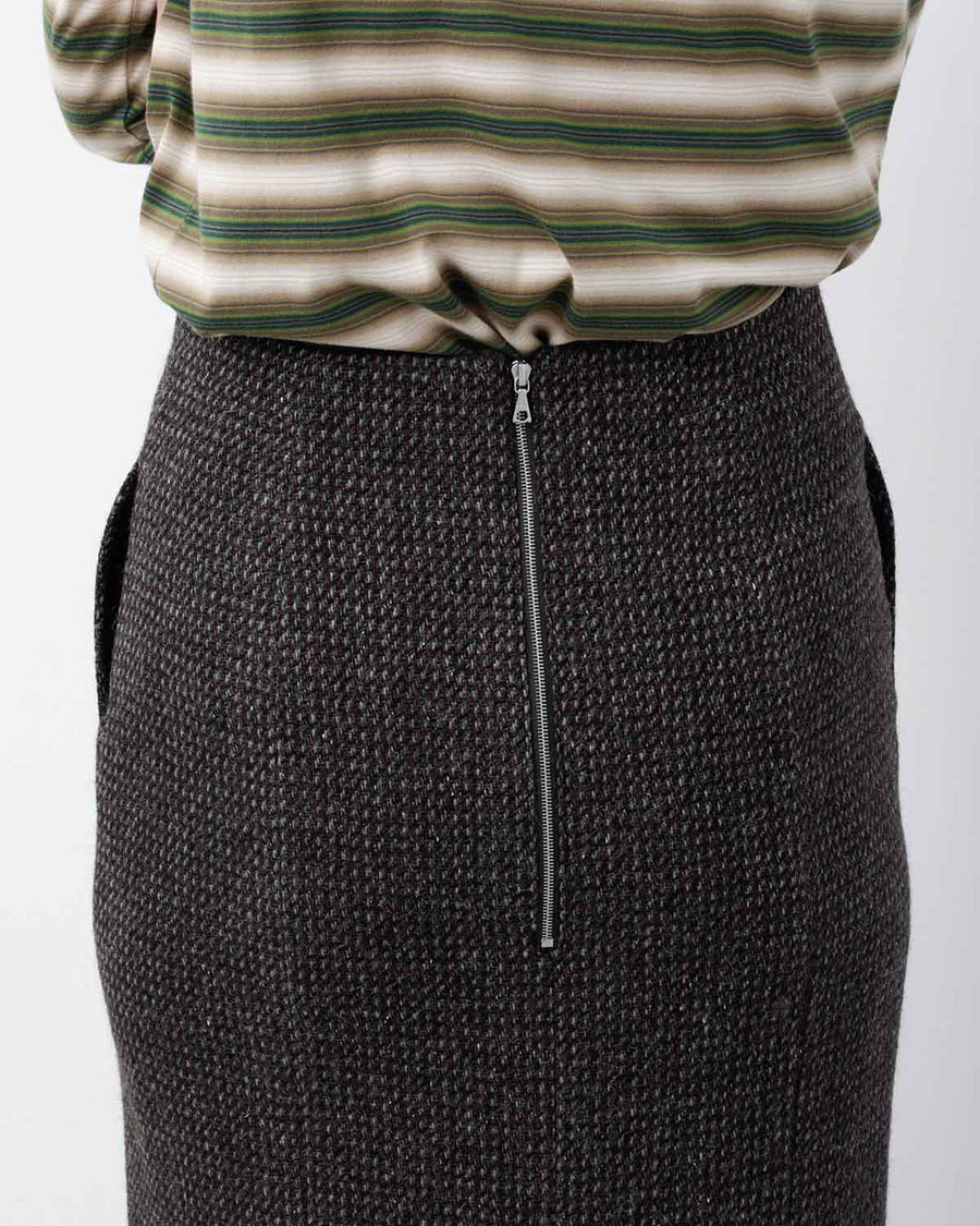 クラシックで優雅な雰囲気をもつ、軽やかなツイード素材を使用したペンシルスカートです。