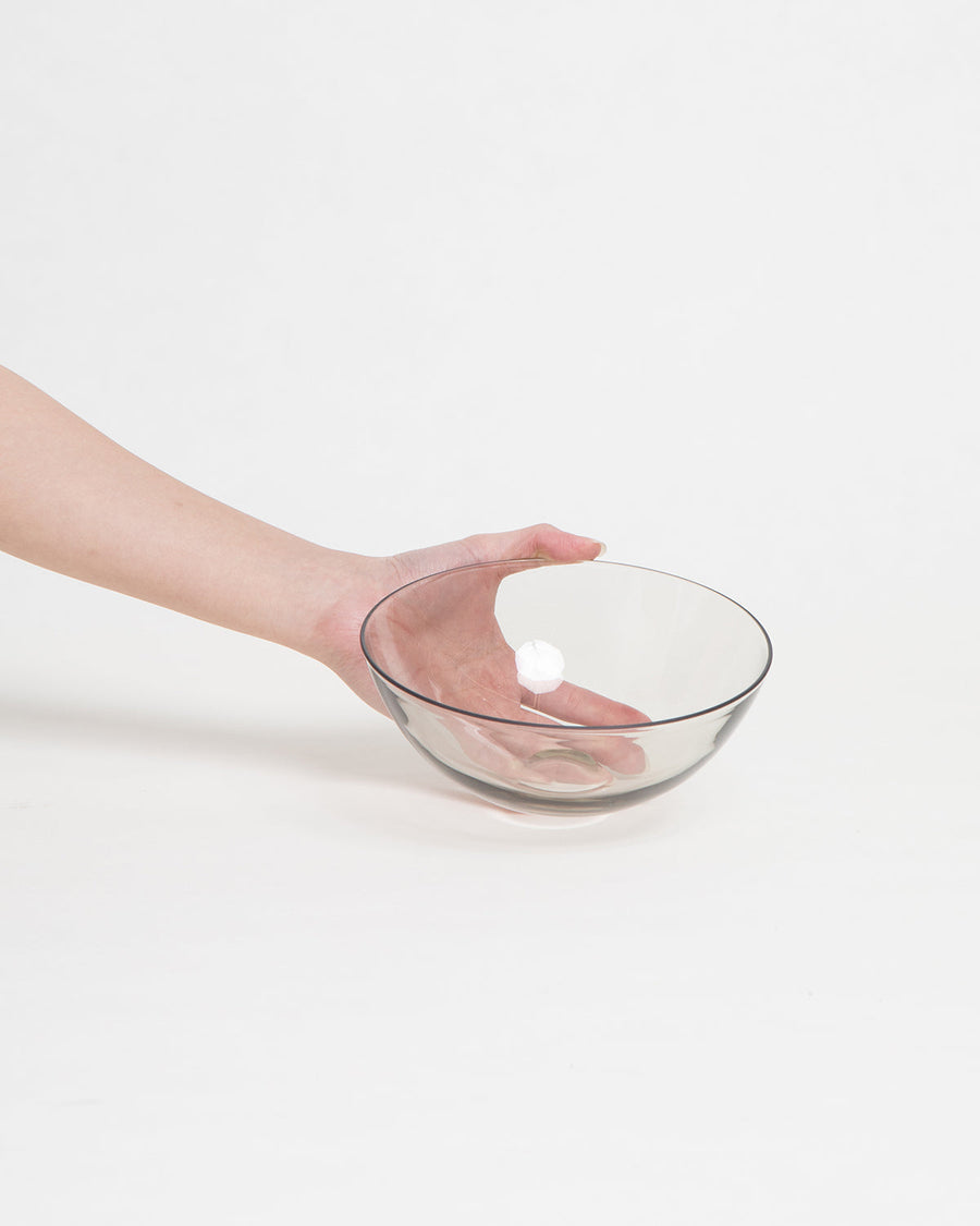 落ち着いた印象のスモークガラスを使用した〈WASHIZUKA GLASS STUDIO〉のボウルです。