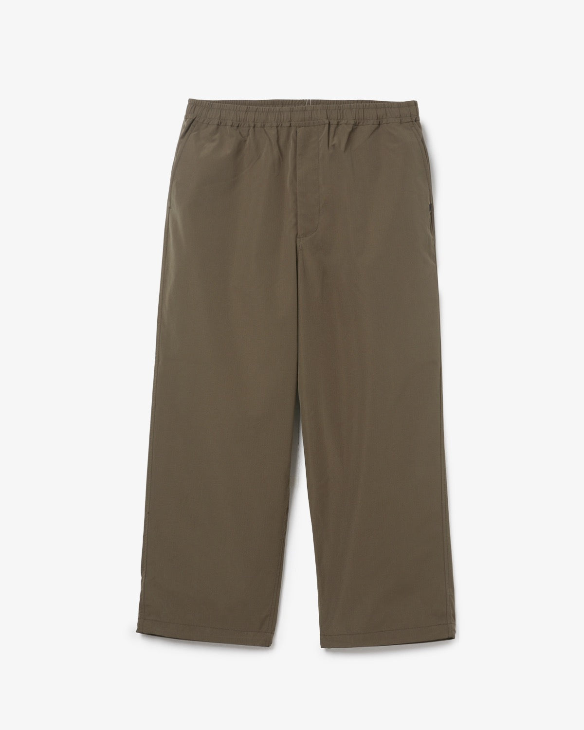 ポリエステル100%ながら、コットンのようなタッチ感と軽量で耐久性のあるリップストップ素材を使用したイージーパンツです。