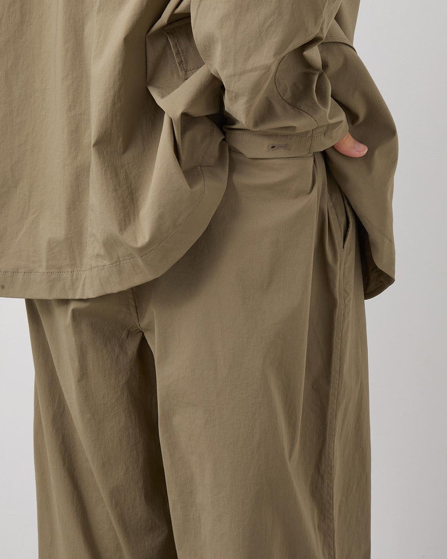 パンツの基本アイテムを現代的な解釈でリデザインし、素材の特徴に加えてウエスト・裾のドローコードで釣りの際に動きやすい仕様にしています。