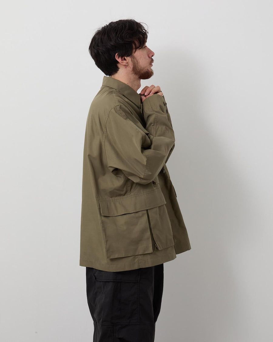 袖にはミリタリーウエアの特徴であるアクションプリーツを配し、腕の動きを妨げにくい快適な着用感を実現しています。