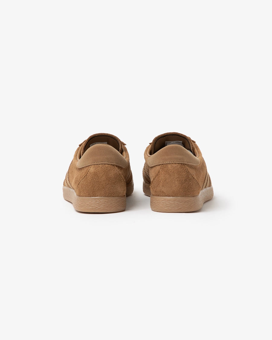 滑らかなスウェードレザーアッパーとワントーンで統一されてたカラーで上品な佇まいに仕上げた、〈adidas〉のクラシックシューズ「TOBACCO」です。