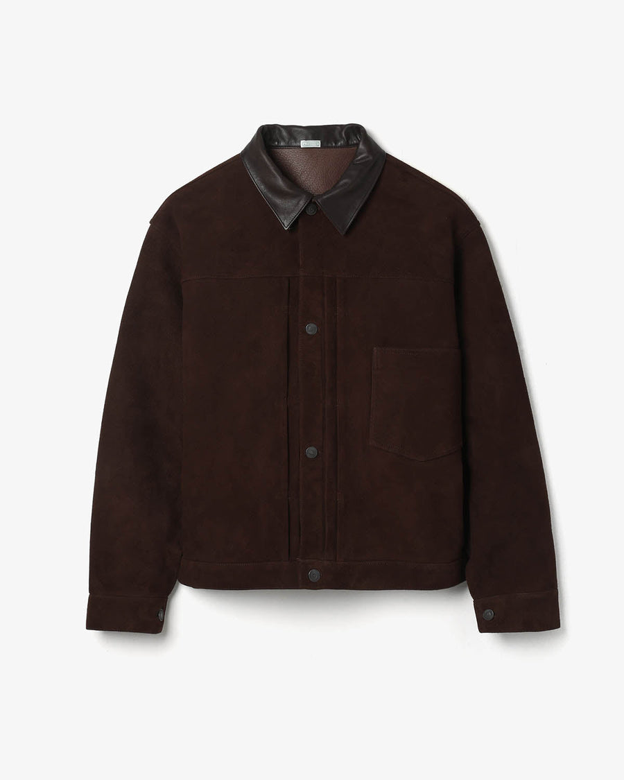 シープレザーで切り替えた、ダークブラウンカラーの表襟の仕様もポイントです。