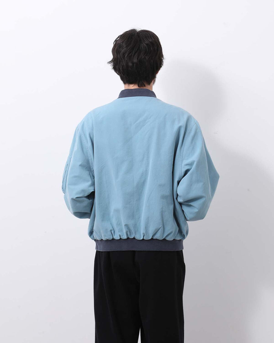 コットンシルク混紡糸に超長綿のナチ ュラルムラ糸をミキシングし、平織組織で仕上げた生地のブルゾンです。