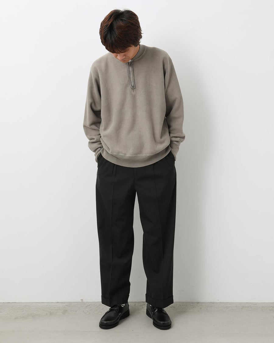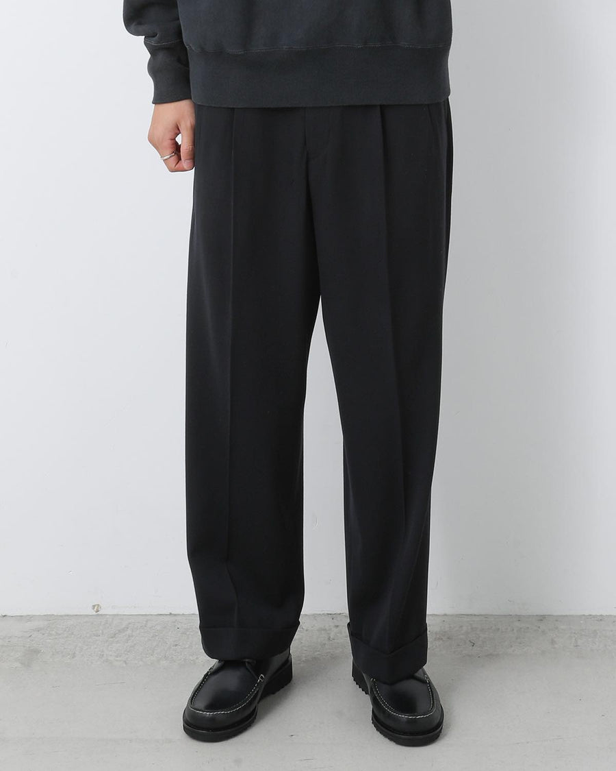カシミアに匹敵する上質なSuper180’sウールを使用した、ギャバジン素材のワイドテーパードトラウザーです。