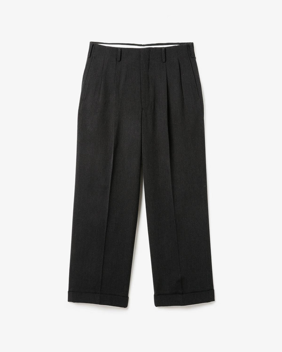 ウエストベルトを排した仕様と2プリーツ取り入れた上品なデザインで、腰から裾へかけて綺麗なテーパードラインを描きます。
