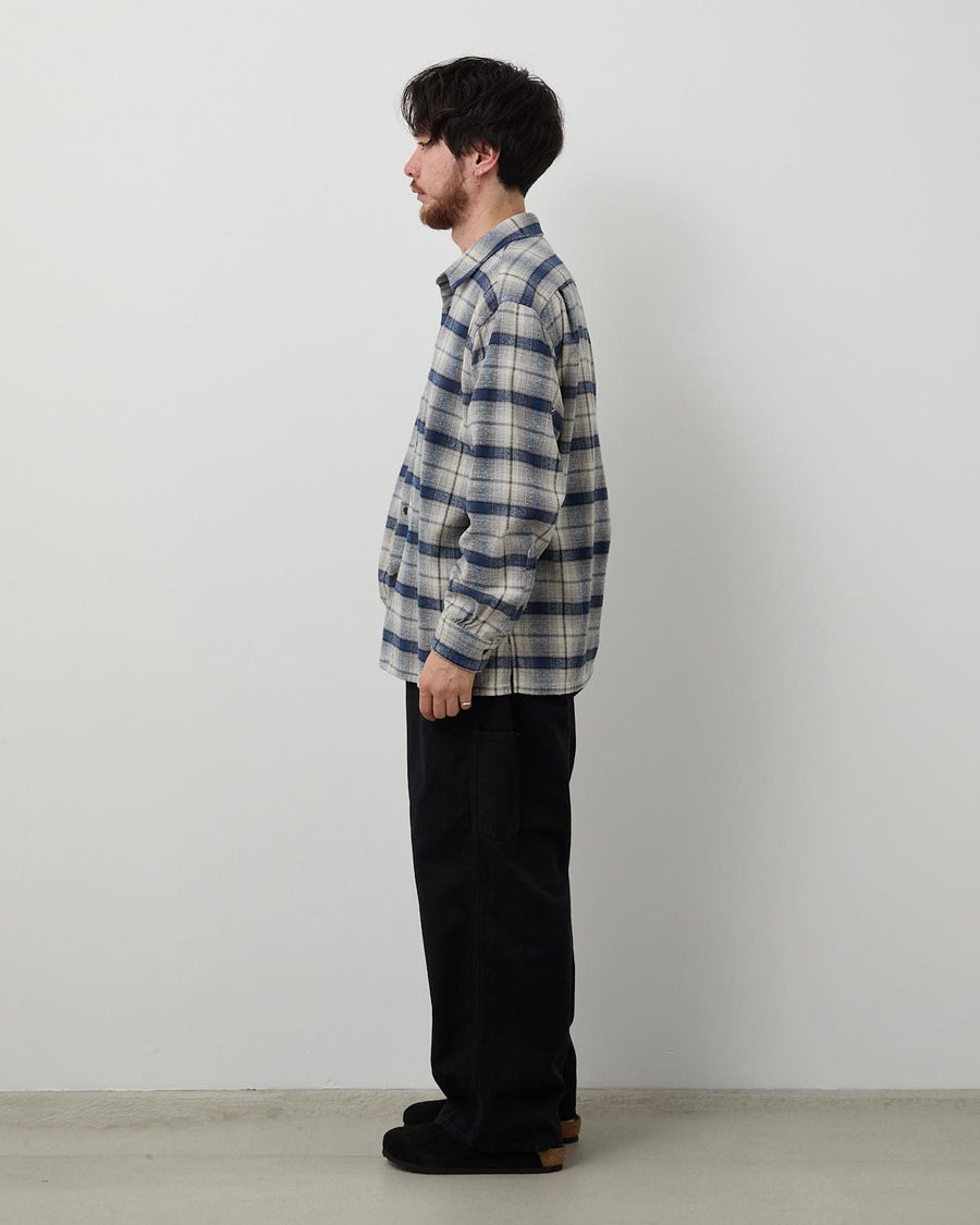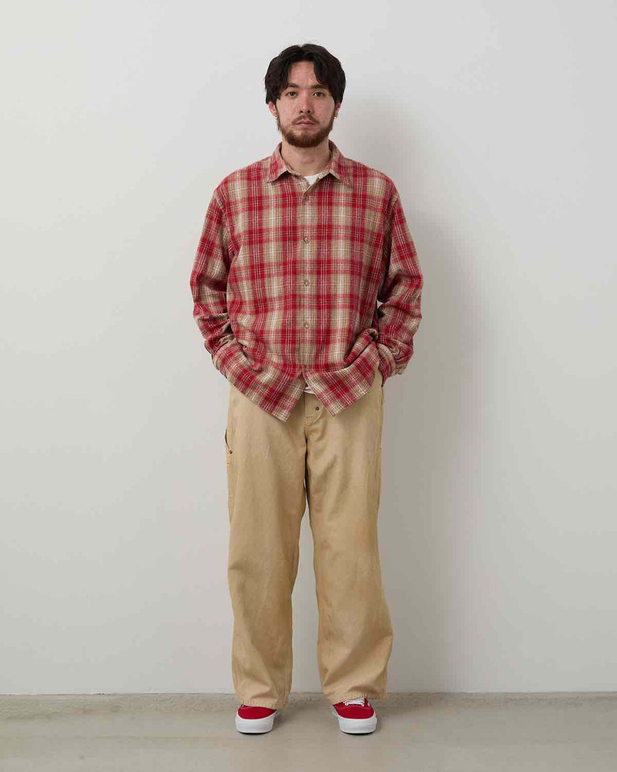 40'sペインターパンツをベースにしており、原型よりもヒップとわたりにゆとりをもたせ、裾にかけてわずかにテーパードさせたワイドシルエットに仕上げています。