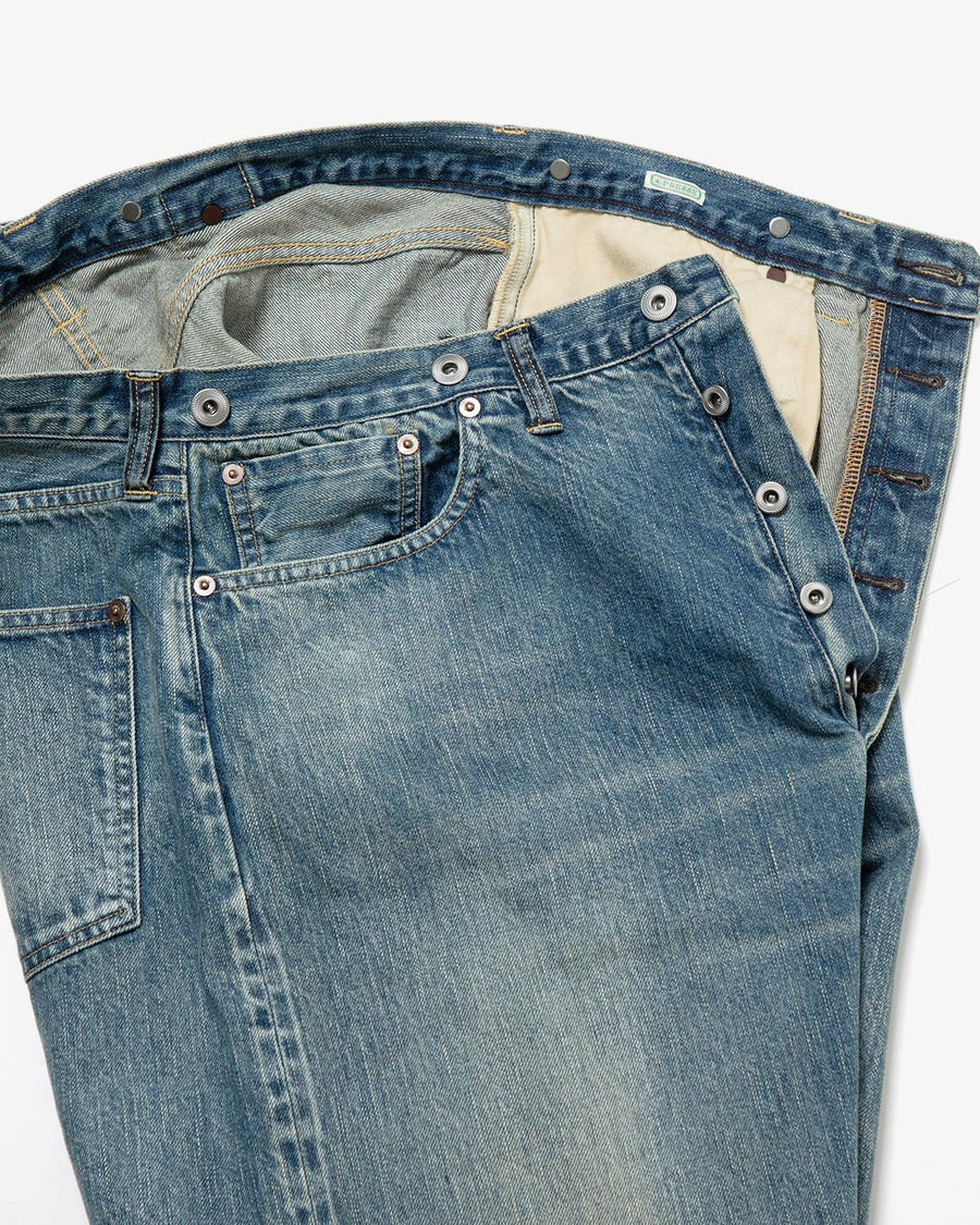 50's後半から60's前半頃の501XXの糸使いを再現してしっかりと打ち込んだ、13ozの赤耳付きセルヴィッジインディゴデニムを使用した「NO.22 WASHED WIDE DENIM PANTS」です。
