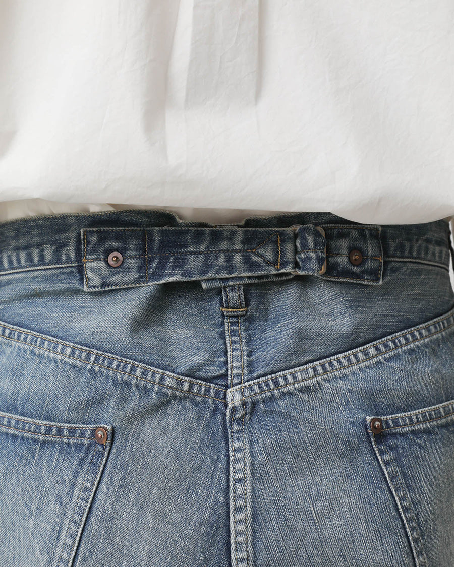 シンチバックやサスペンダー釦が特徴の1922年モデルの501XXをベースに、バランスを整えた太めのシルエットにリデザインしています。