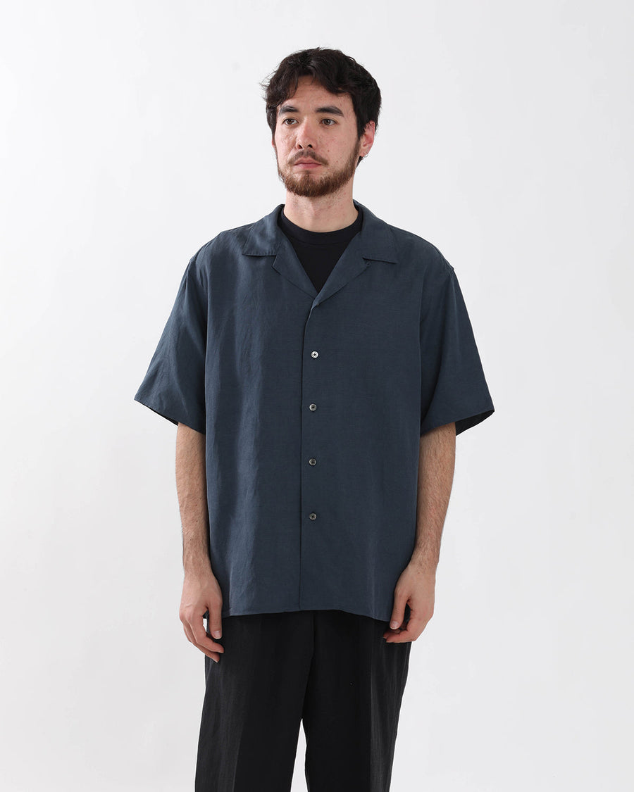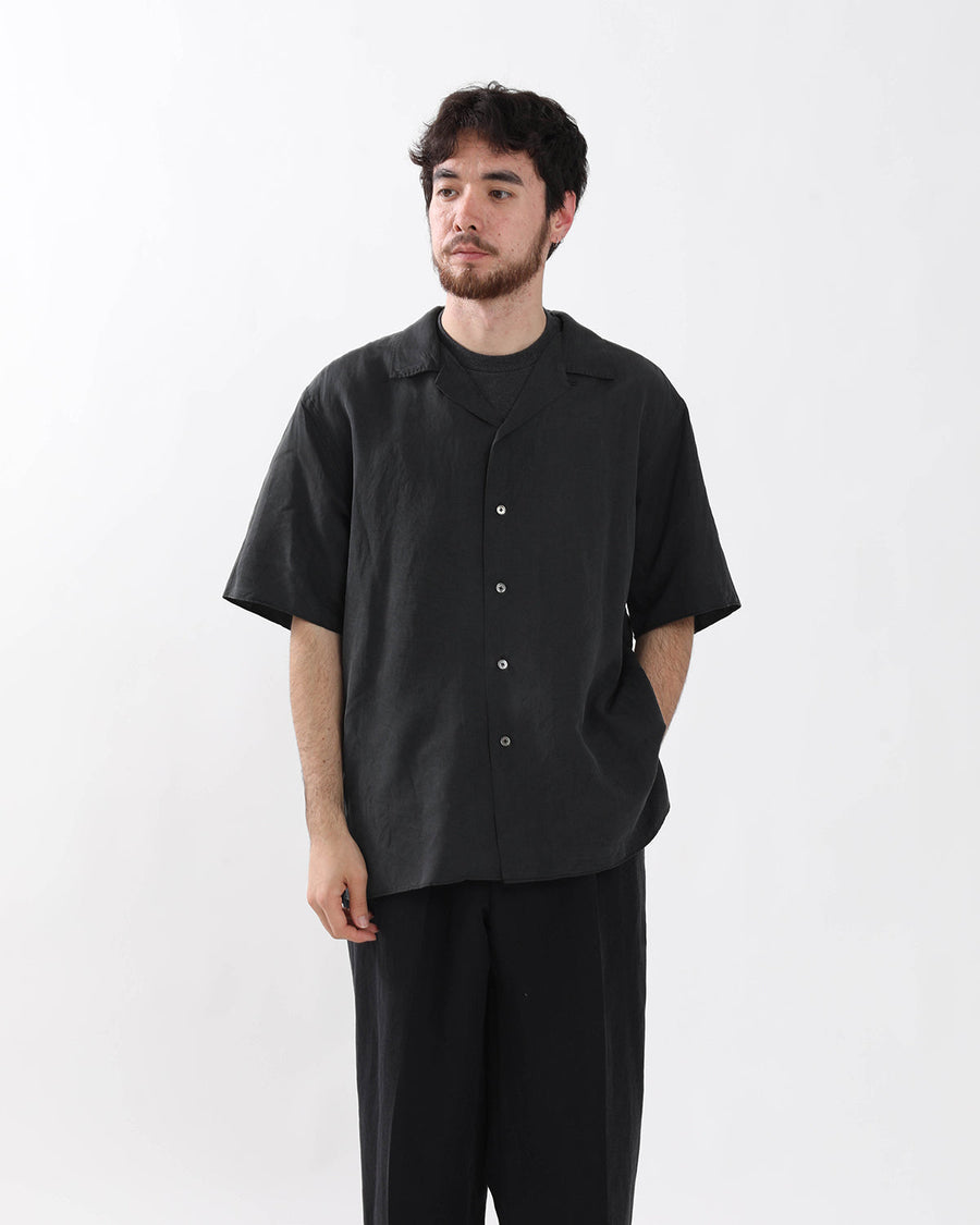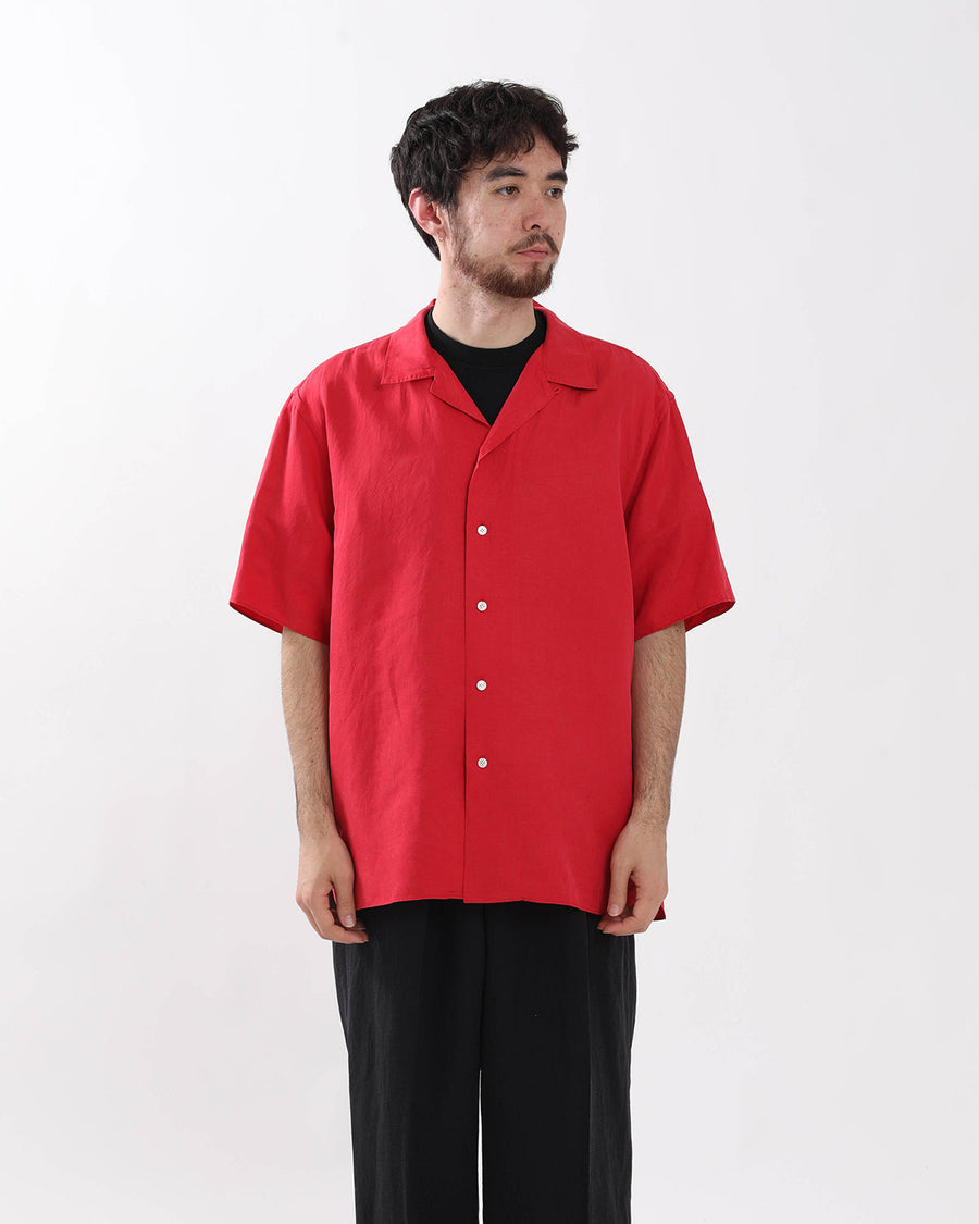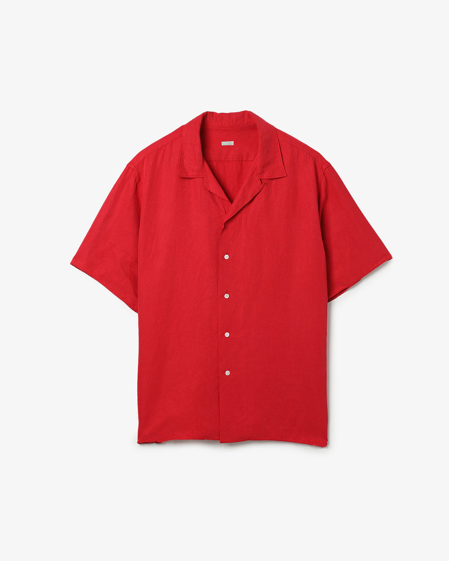 A.PRESSE VINTAGE SILK LINEN S/S OPEN COLLAR SHIRT
