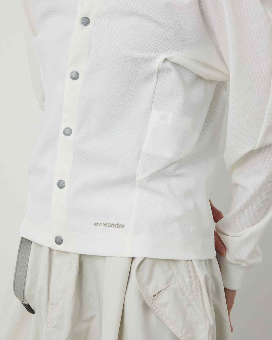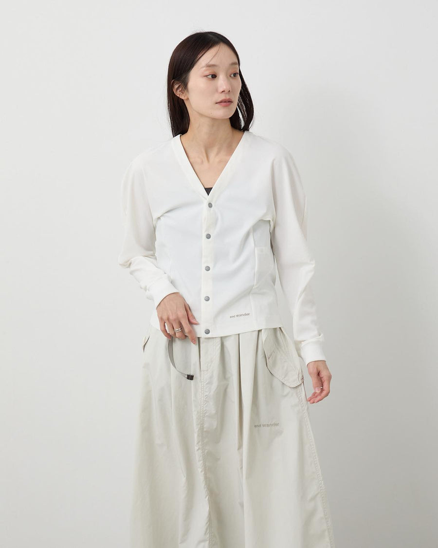 吸水速乾、UVカット機能をもつストレッチメッシュを使用したドルマンカーディガンです。