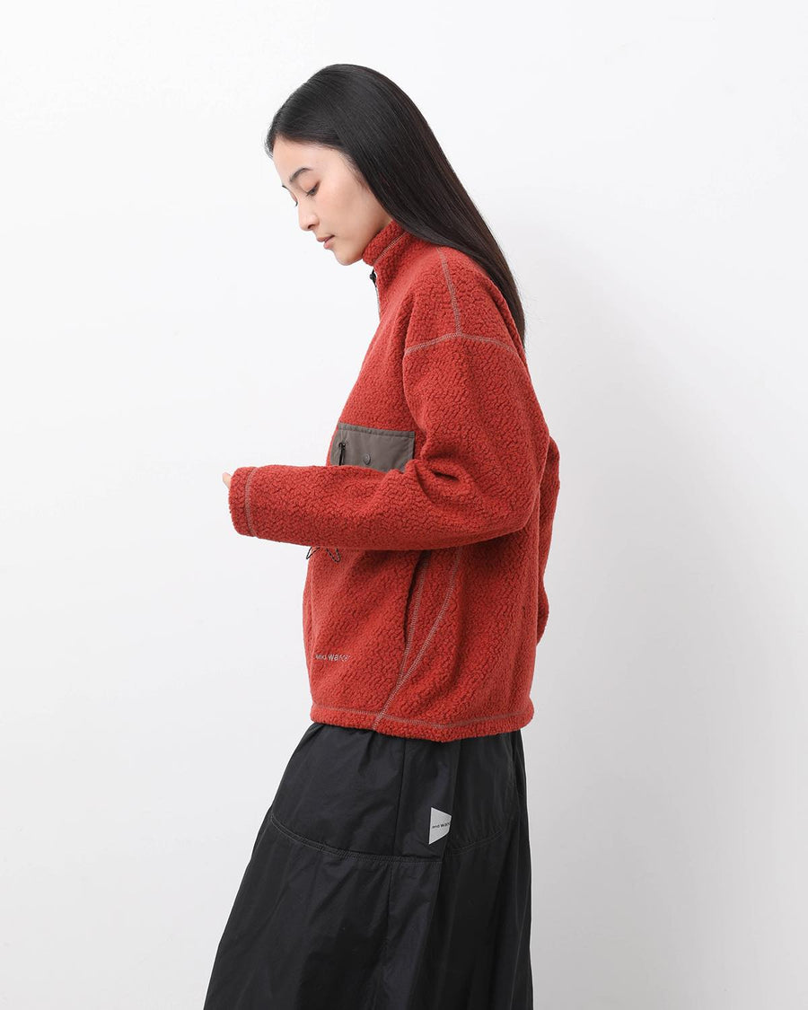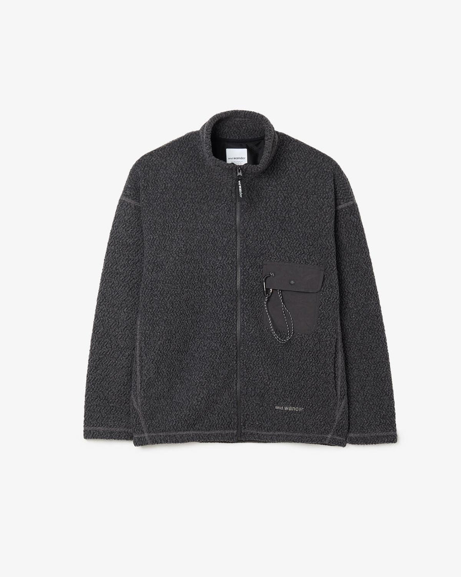 クラシカルなプルオーバーフリースを踏襲したデザインが特徴で〈and wander〉らしい立体的なカッティングとオリジナルのカラビナデザインでアレンジを加えています。