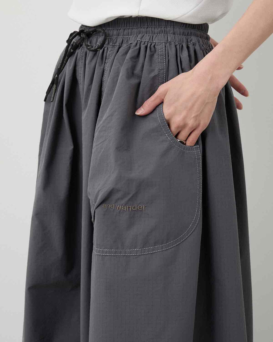 縦糸にオーガニックコットン、横糸に耐久性にすぐれたCORDURAナイロン糸を使用したリップストップ素材のスカートです。