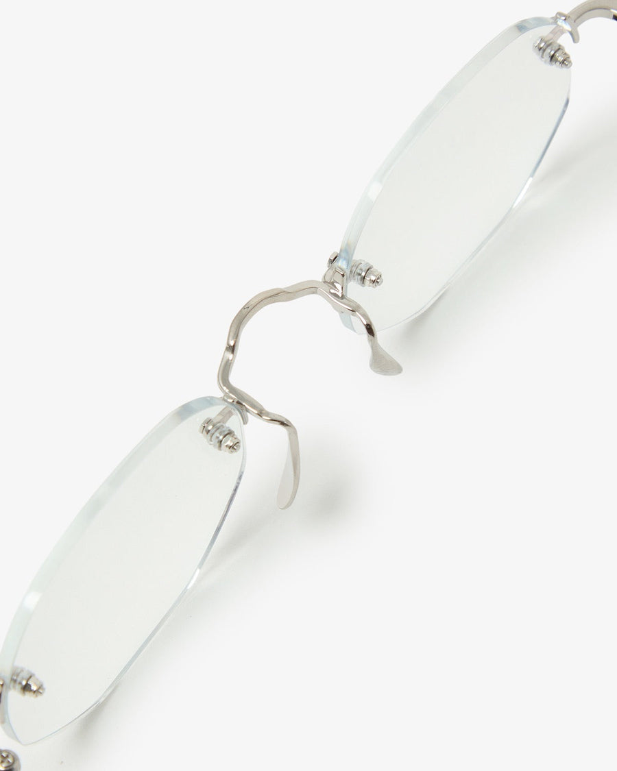 リムレスフレームは、ノーズパッド、右テンプル、左テンプルの3つの部品のみで構成されています。