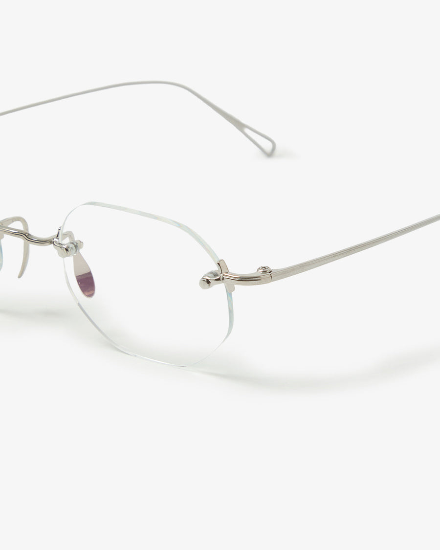 かつてリムレス眼鏡の代名詞であった「3PIECE」の真髄を体現した、シャープで明確な輪郭を持つオクタゴンスタイル「3PIECE-O」です。