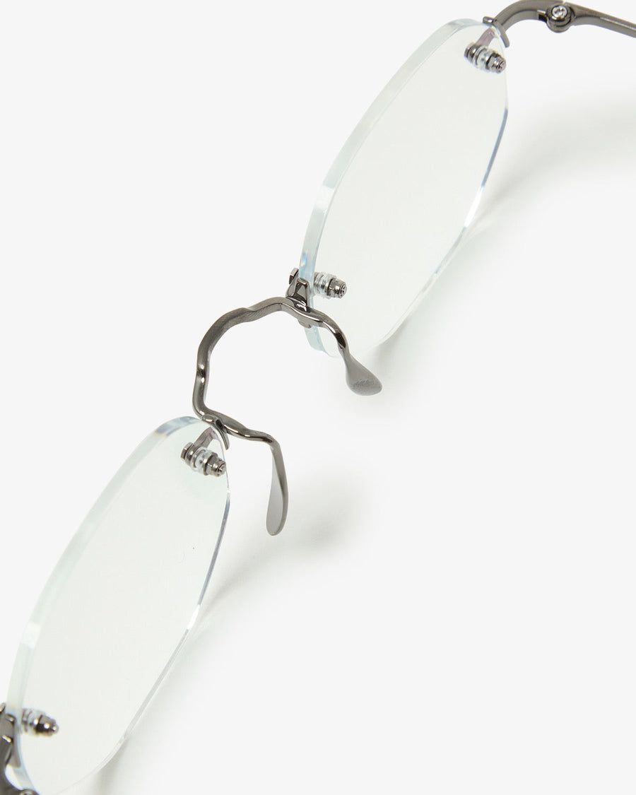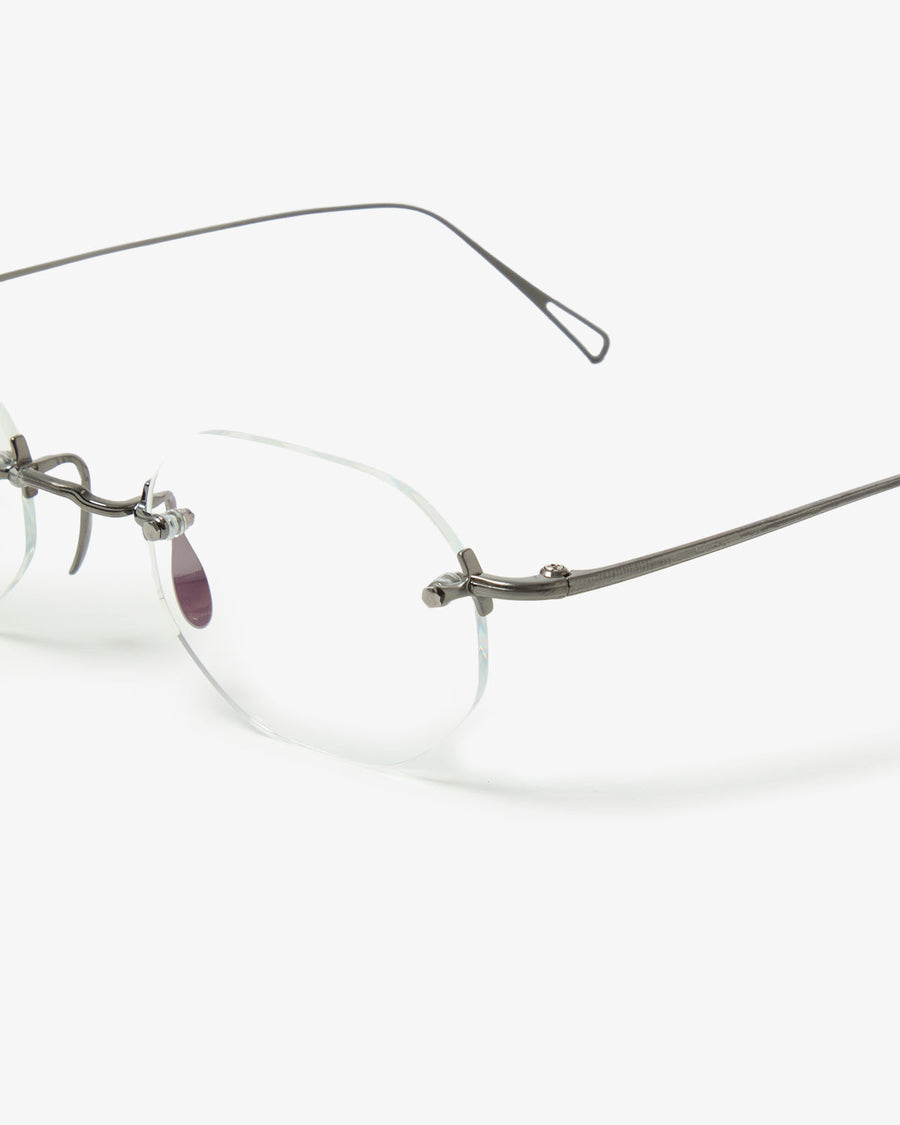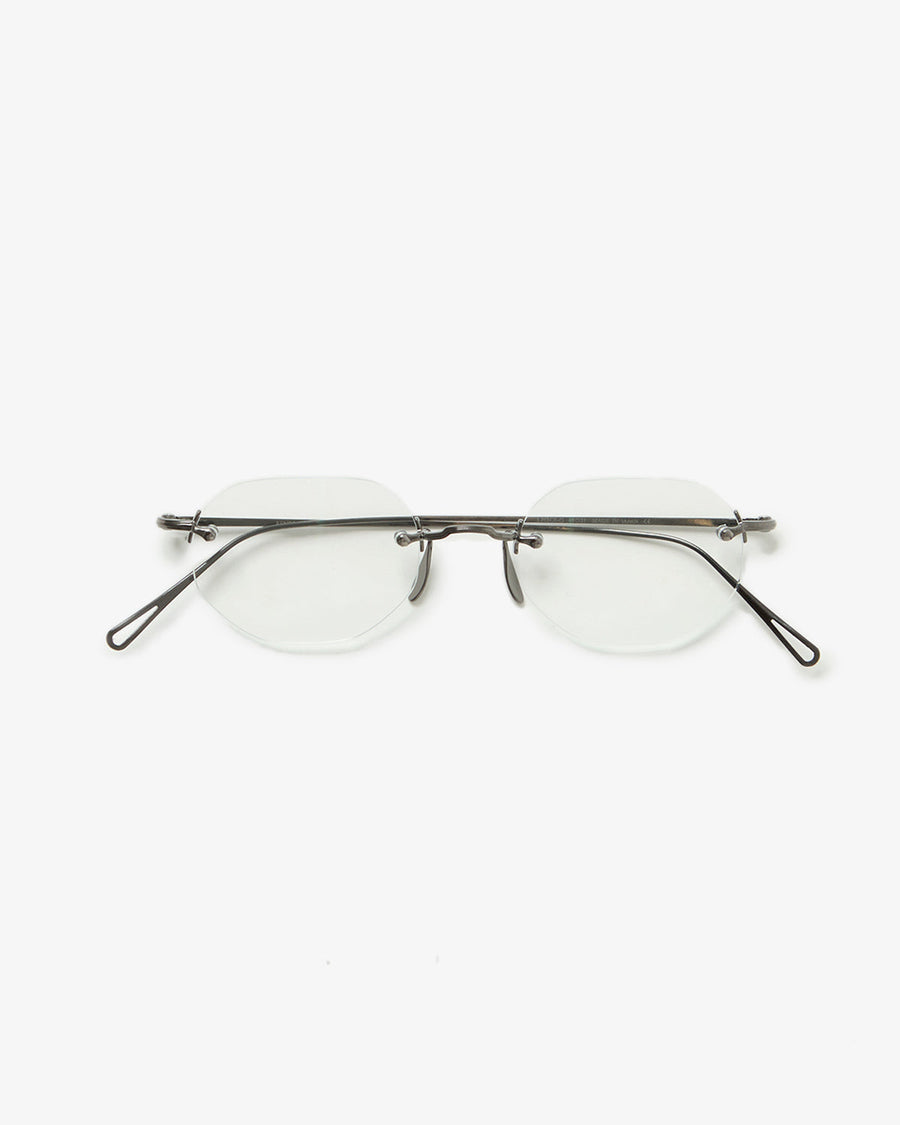 かつてリムレス眼鏡の代名詞であった「3PIECE」の真髄を体現した、シャープで明確な輪郭を持つオクタゴンスタイル「3PIECE-O」です。