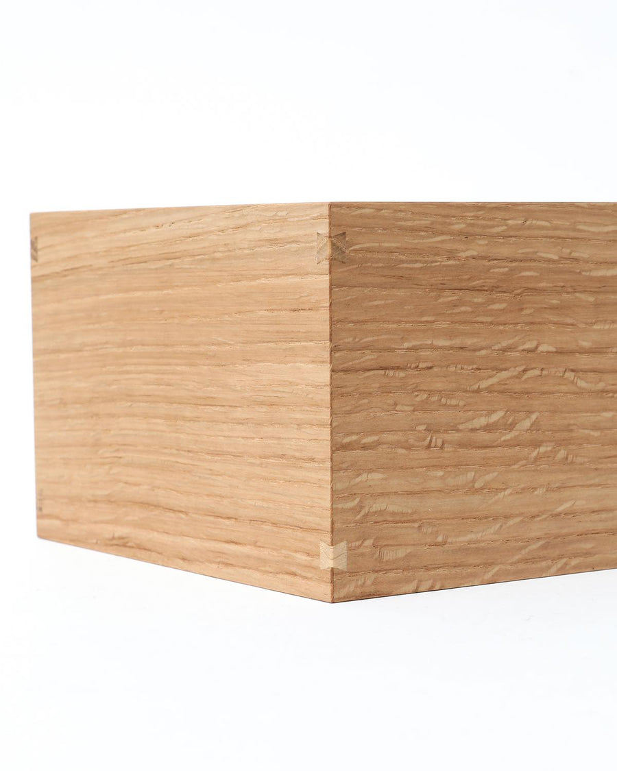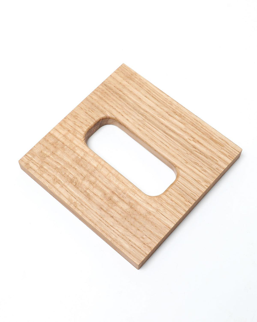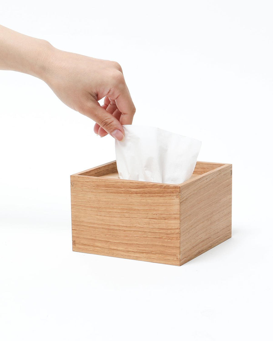 試行錯誤の末、比重のある水楢を使うことで、蓋が浮くことなくスムーズに、ティシューを引き出すことが可能な仕様です。