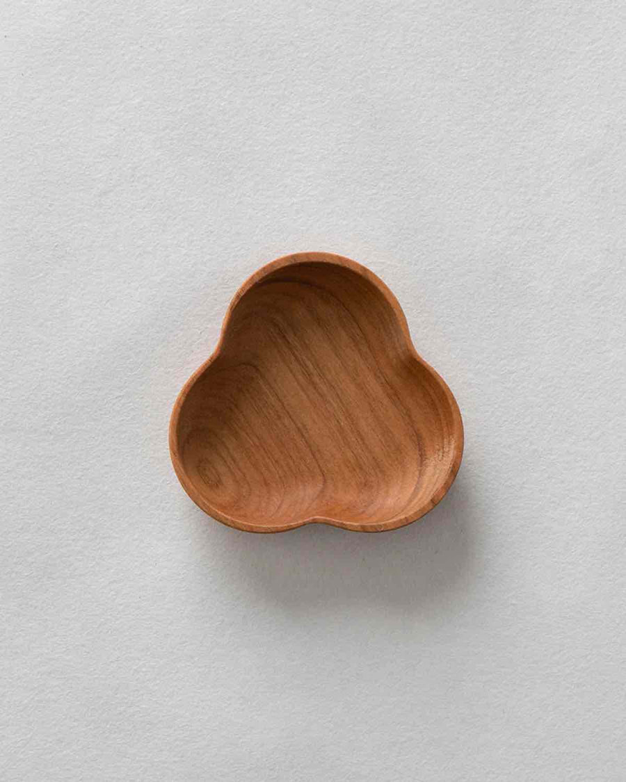 上質な桜の無垢材を使用し、木目を生かしオイル仕上げを施した三つ葉形の小皿です。