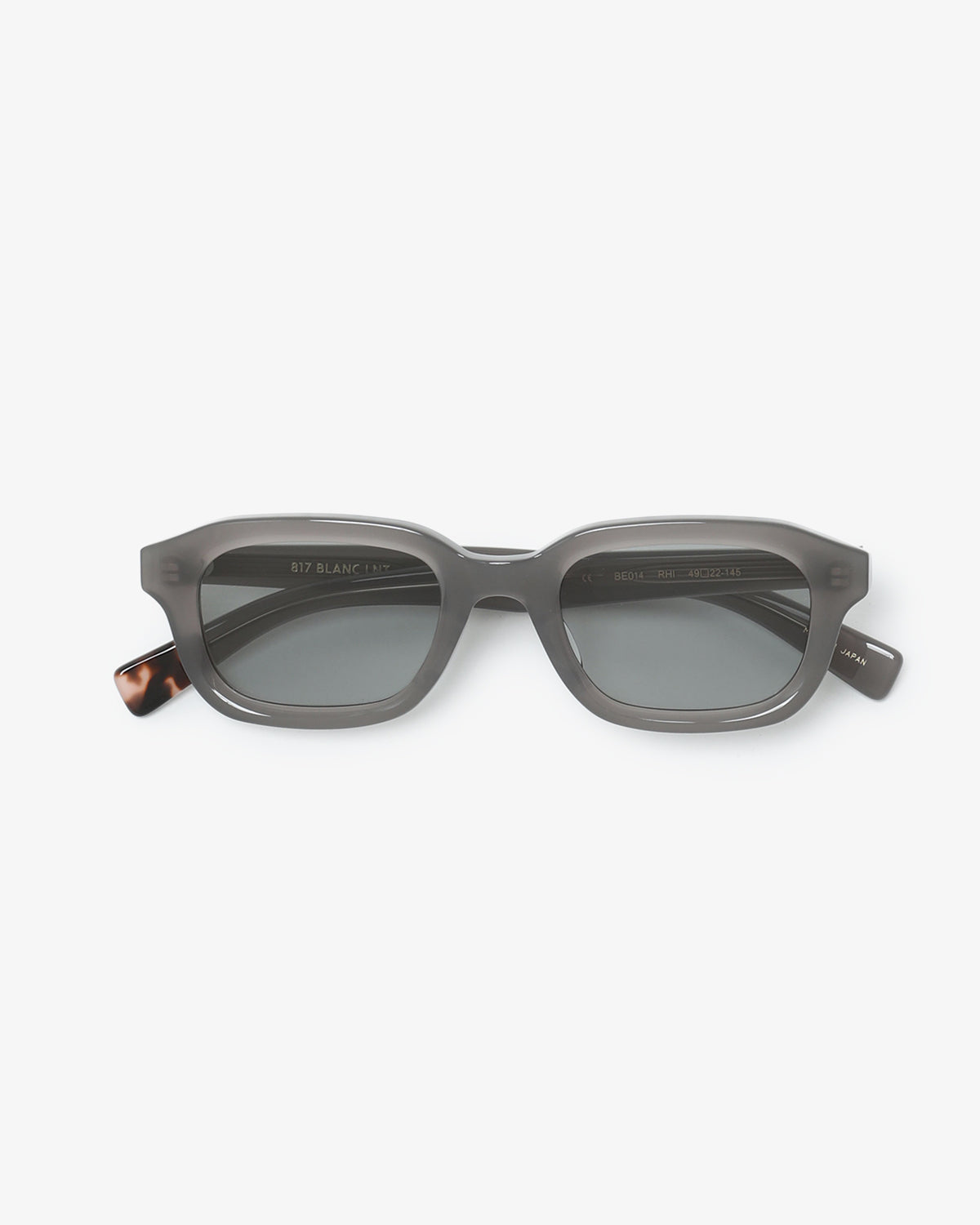 上リムに少しクセをつけた横長のスクエアウェリントンシェイプサングラス「BE014」です。