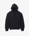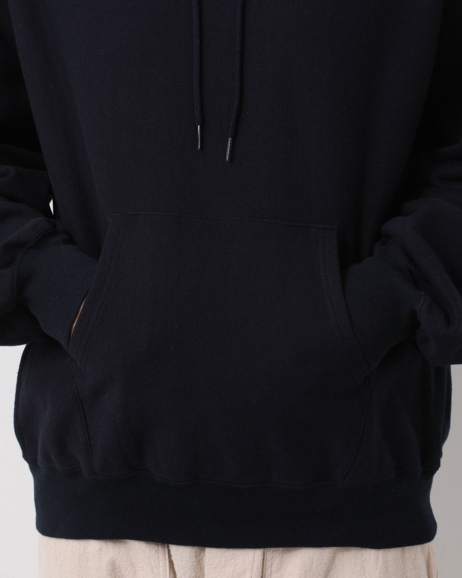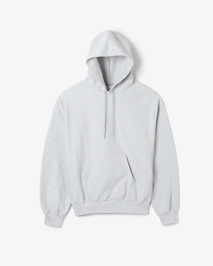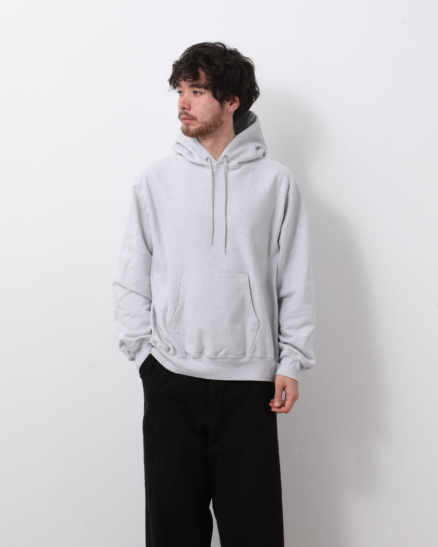 表面の毛羽を抑え、裏糸に無撚糸を使用し、限界まで度詰めして薄手に編み上げたフーディーです。