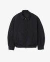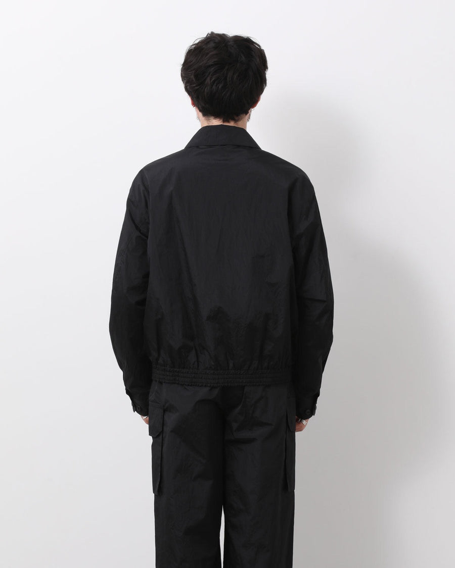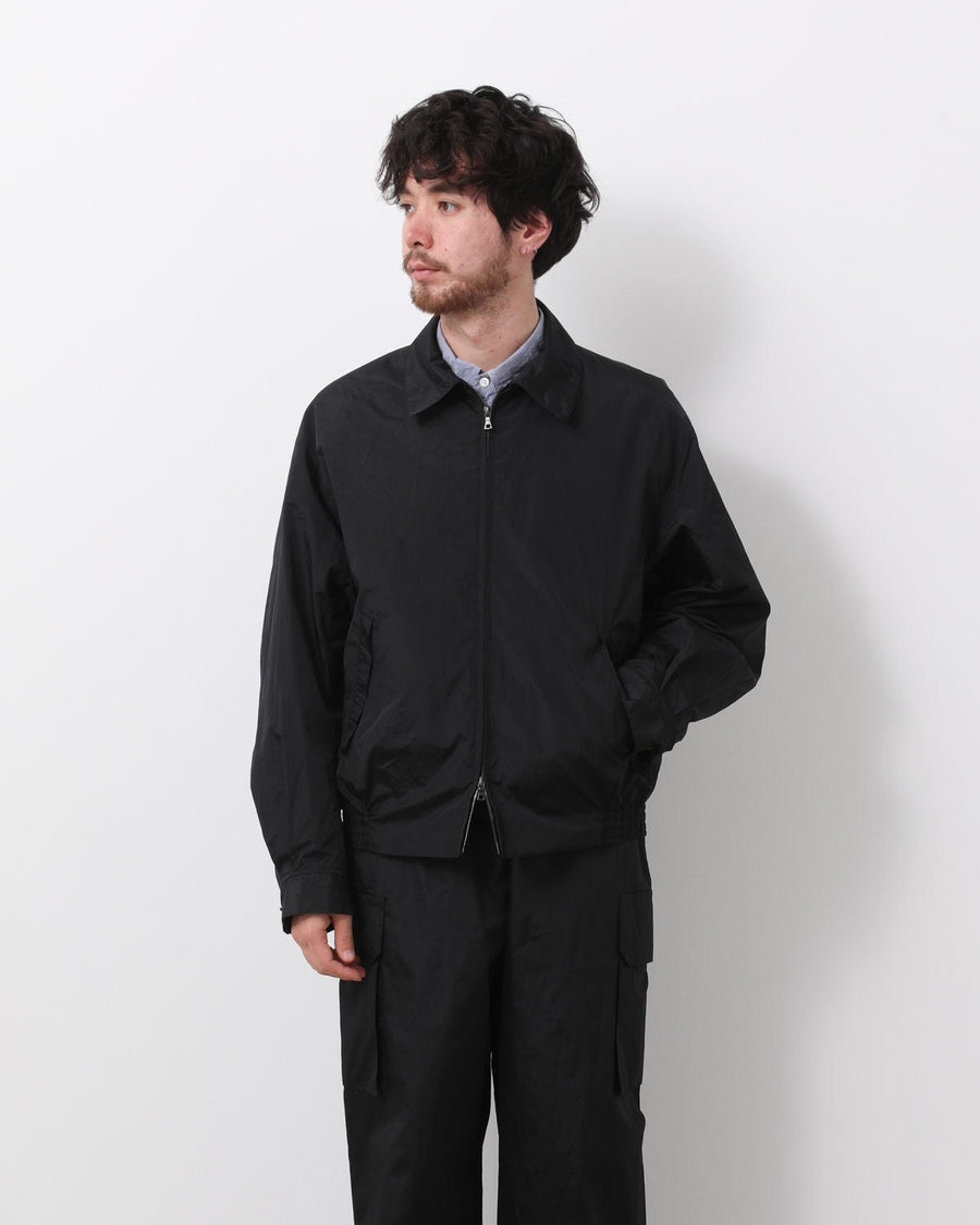ポリエステルと細番手のシルク糸、生糸を交互に織り上げた生地を使用した、ジップジャケットです。