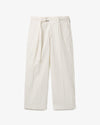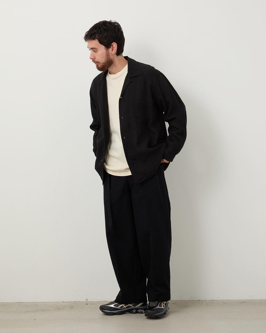 コットンとリネンを高密度に織り上げた、豊かな風合いのベルテッドパンツです。