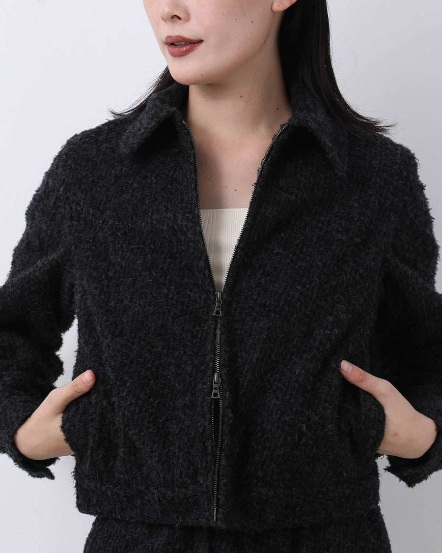 表地にウールを使用し、細かくカットした後に洗いをかけることでウールを縮め、不揃いで独特な表面感を生み出したブルゾンです。