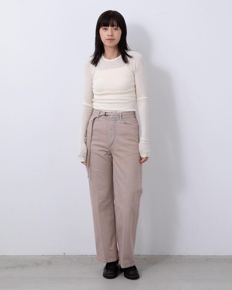 12.9ozのオリジナルデニム生地を使用した、「12.9OZ DENIM NARROW BELTED PANTS」です。