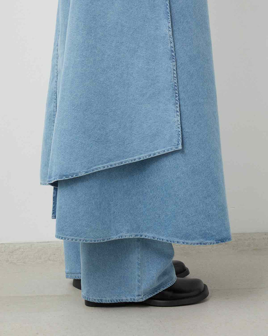 シルクコットンデニム素材を使用したミディアム丈ワンピースです。