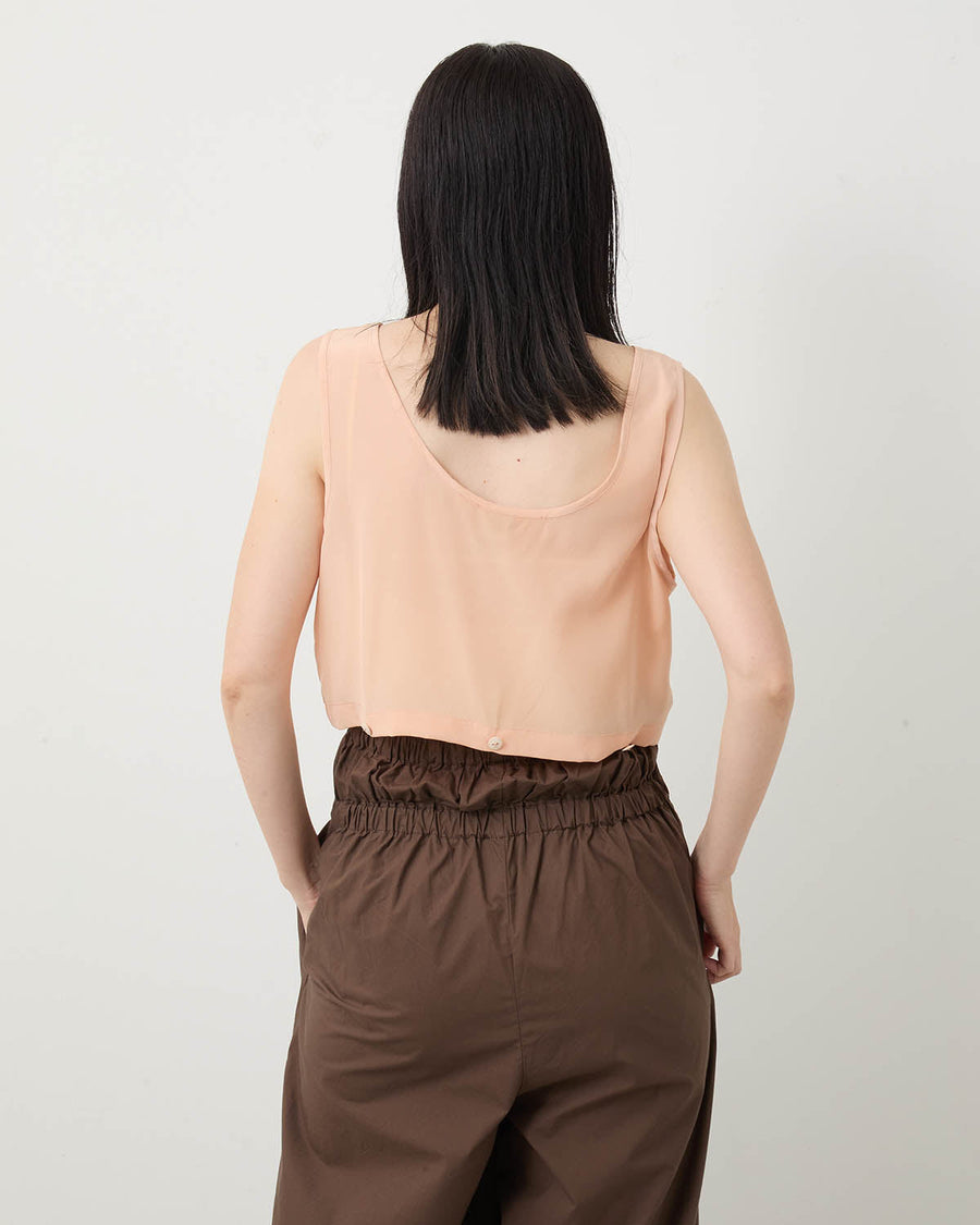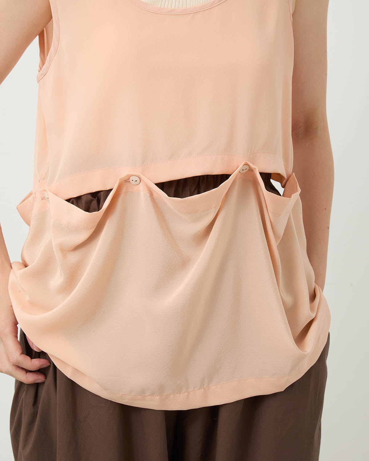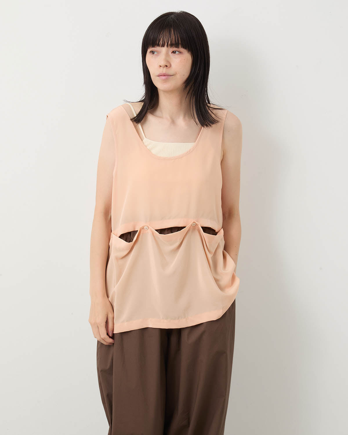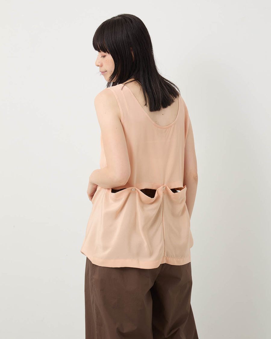 艶感のあるシルククレープタンクトップです。
