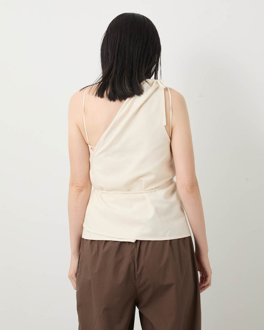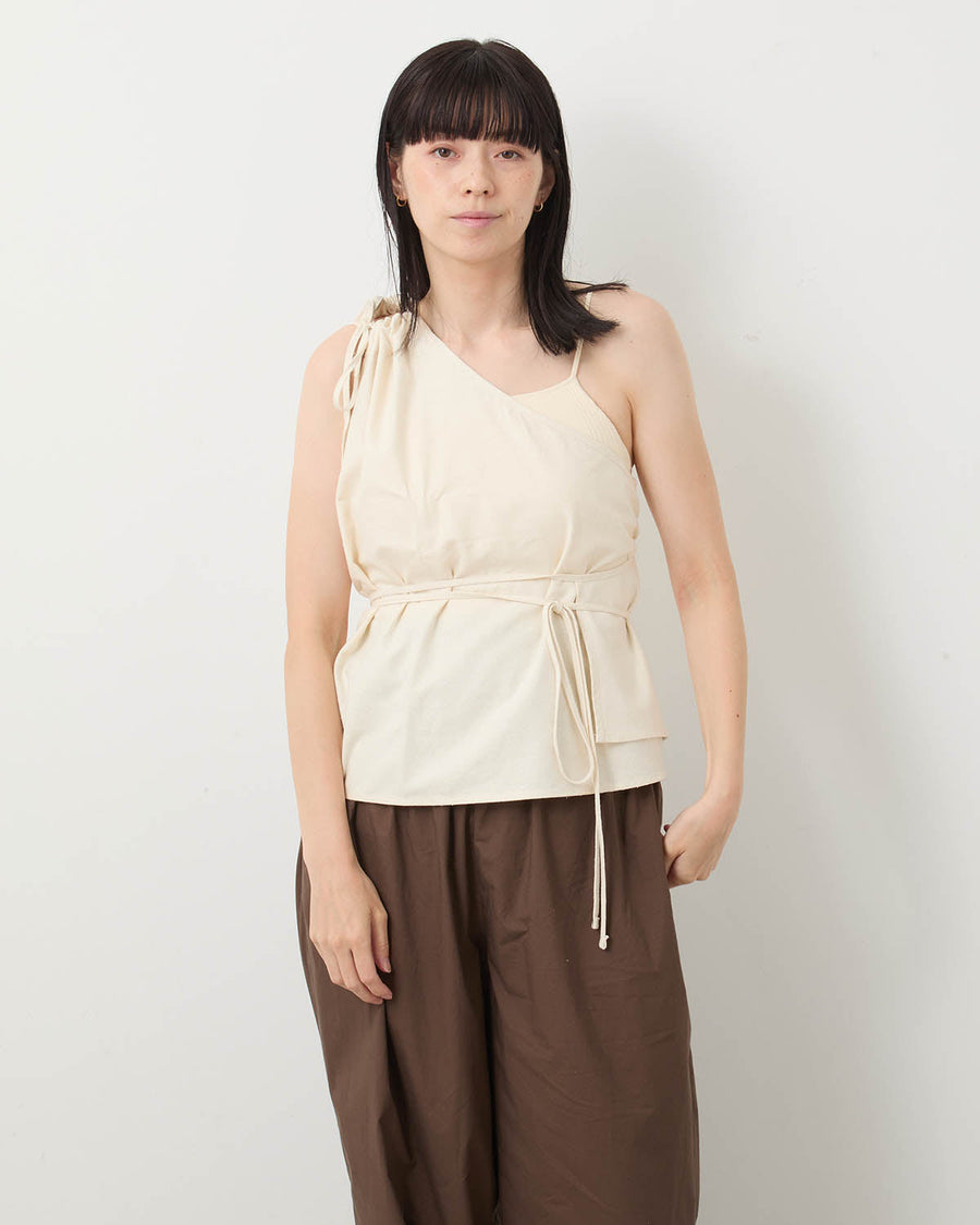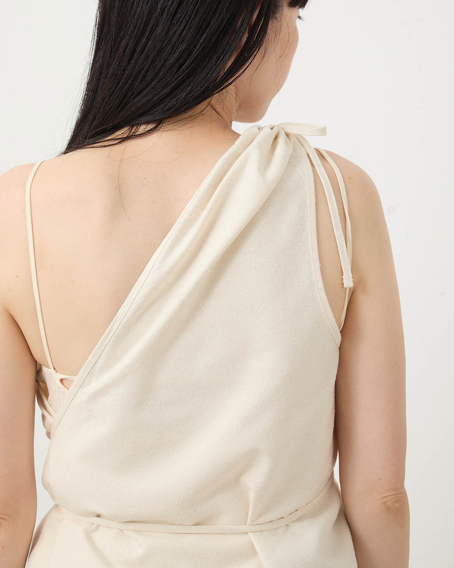 ハリ感のある、ワイルドシルク100%を使用した、アシンメトリーなラップトップです。