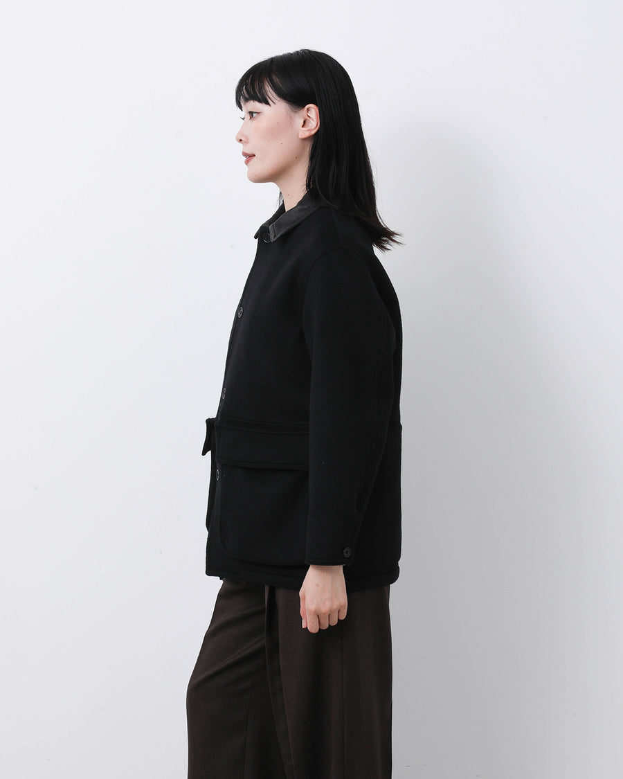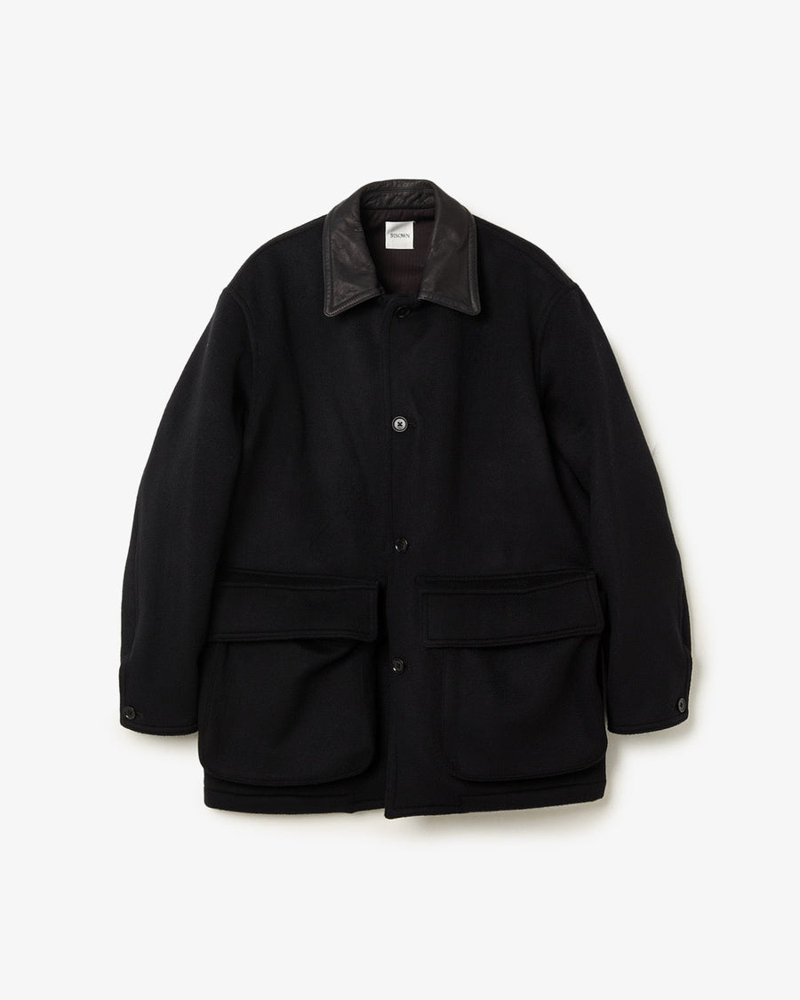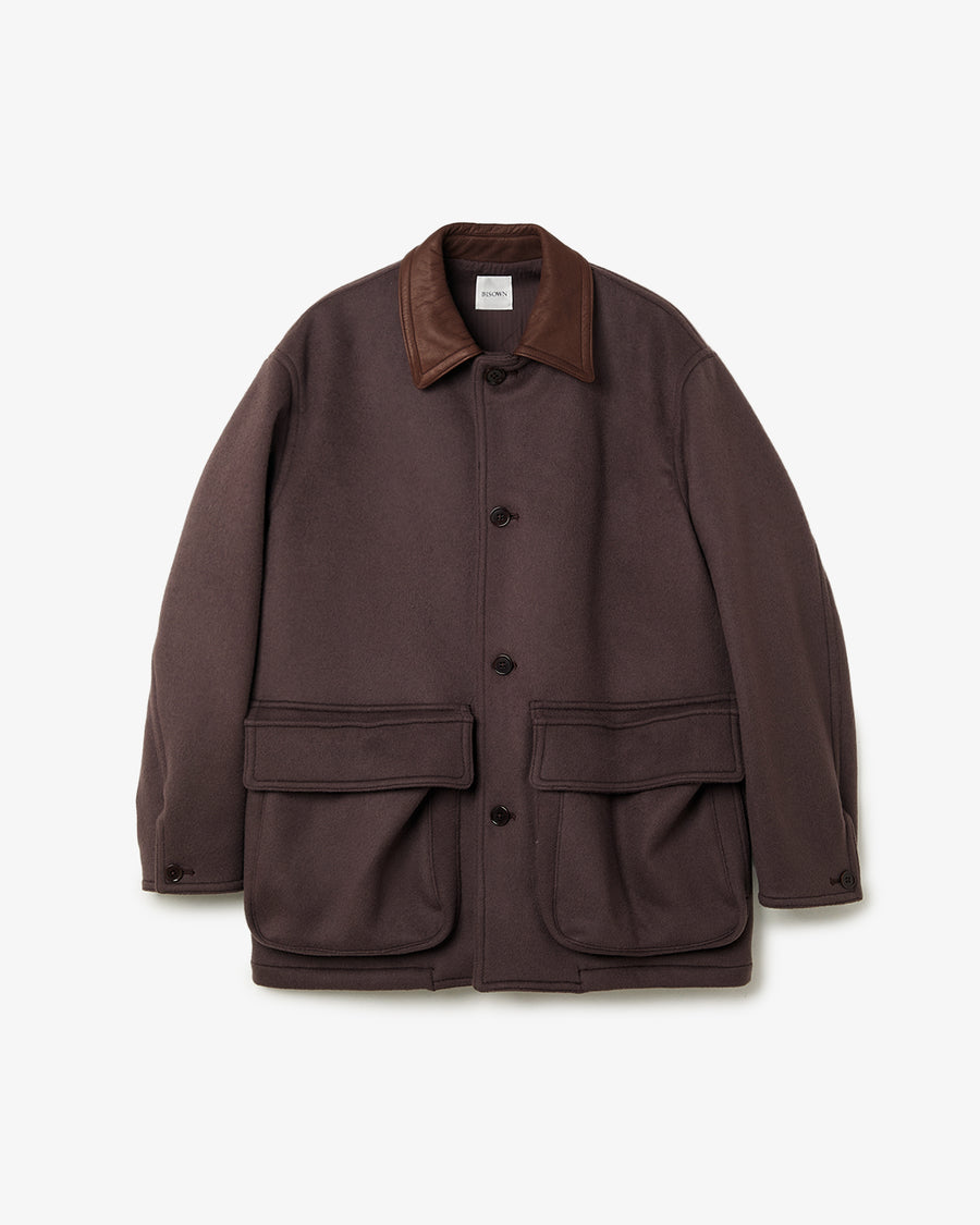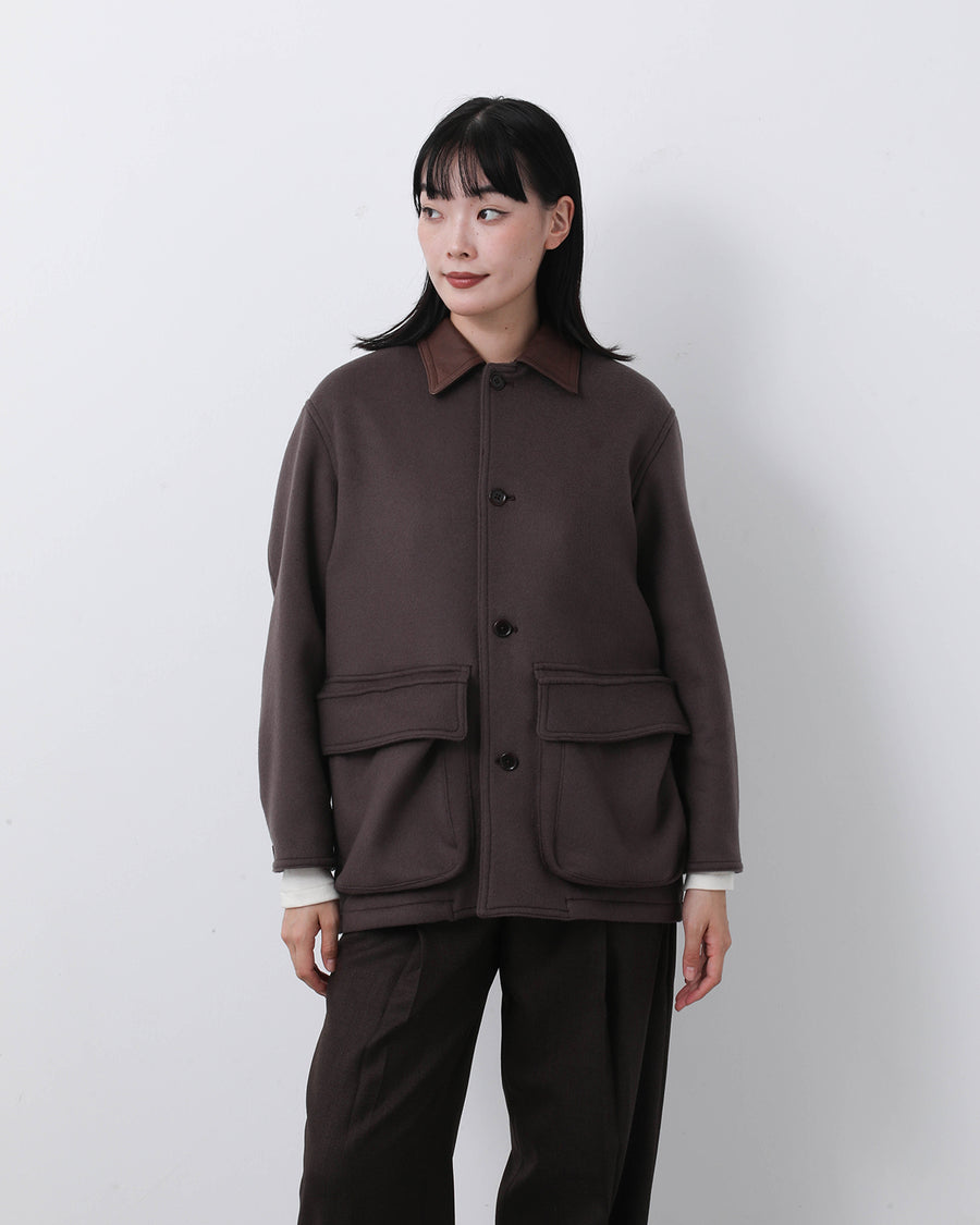 繊維が細く光沢があるしなやかなラムズウールを使用した、二重織ビーバー素材のハンティングコートです。