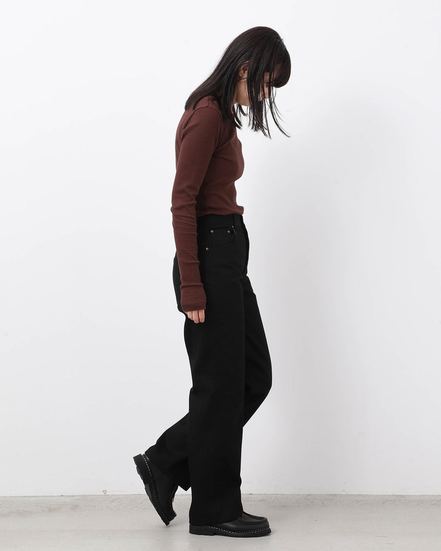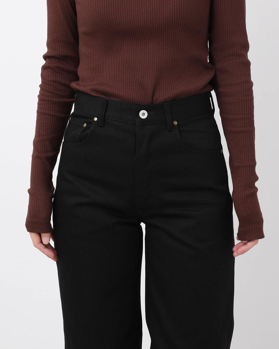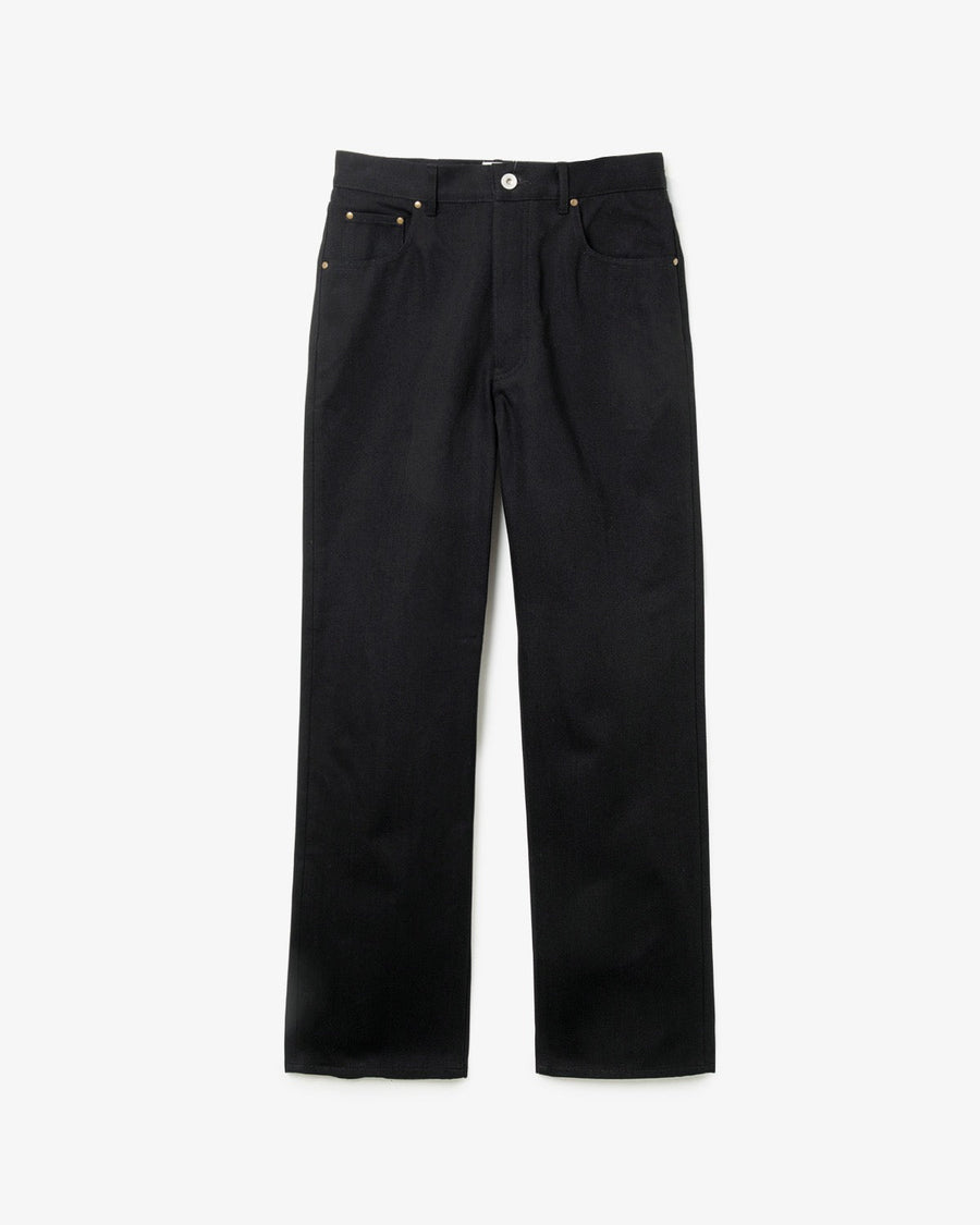 1900年代初めから操業を続けているメーカーにて作成されたデニム生地を使用し、先染めで黒く染めた5ポケットのブラックデニムです。