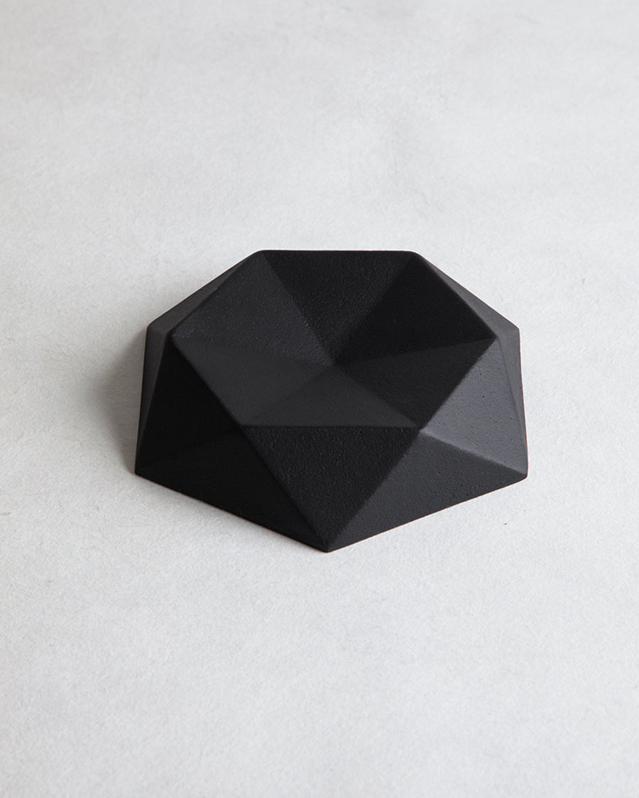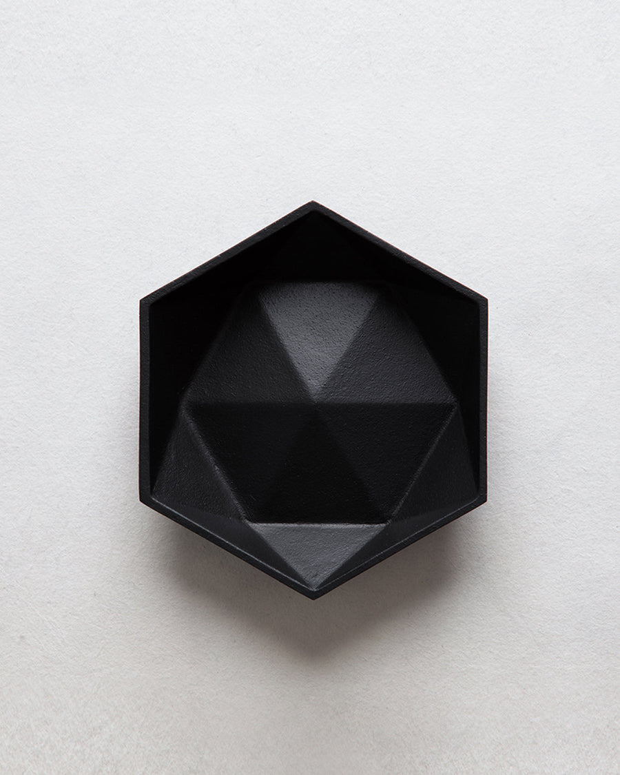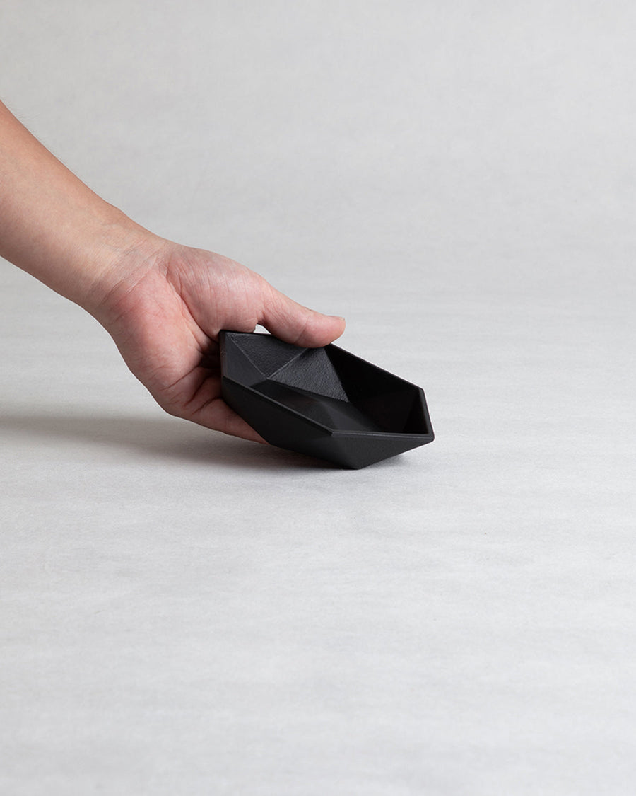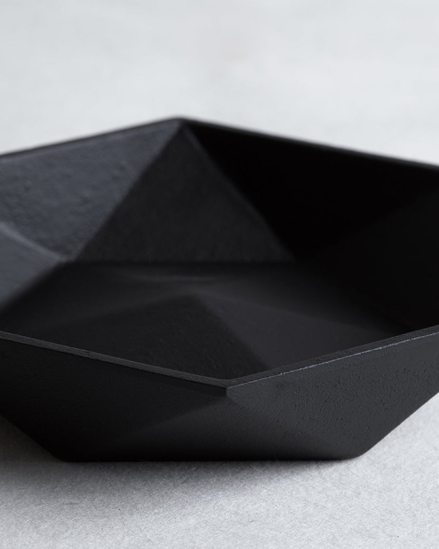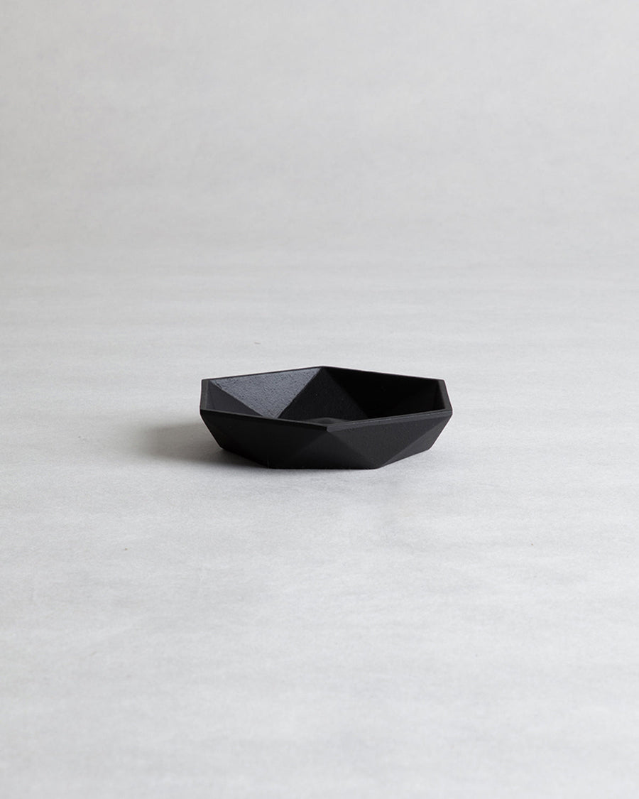 オクタゴン型の直線フォルムが特徴的な、伝統的な南部鉄器製の小皿です。