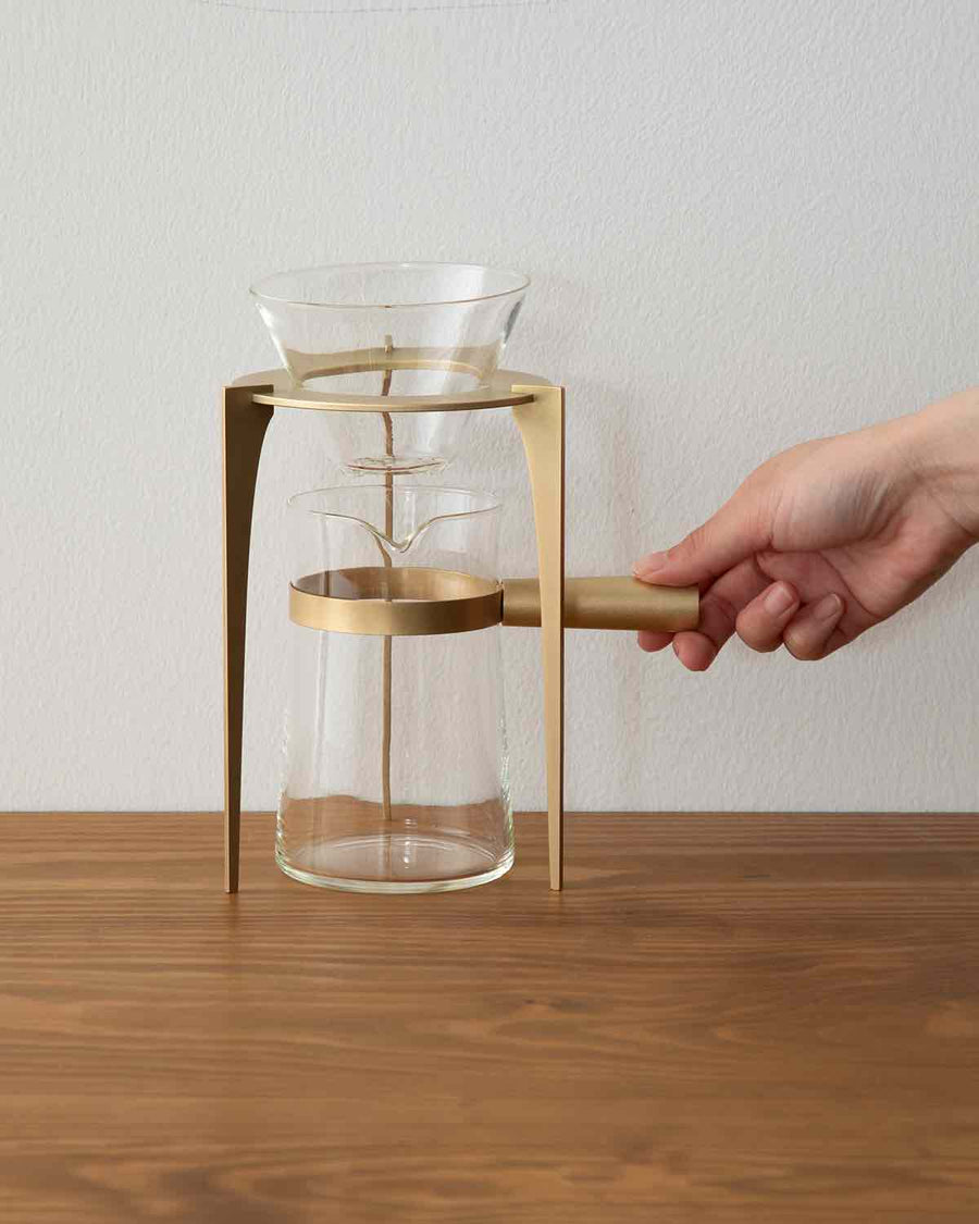 ドリッパーとピッチャーの僅かな形の違いに合わせて手作業で真鍮を取り付けているため、精巧で美しい佇まいを実現しています。