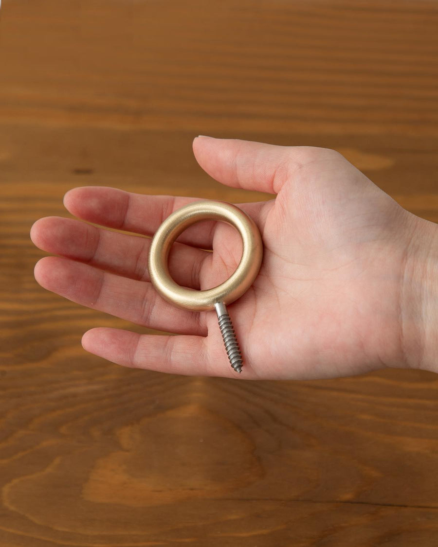 無塗装の真鍮を使用したシンプルなデザインのリング型フックです。