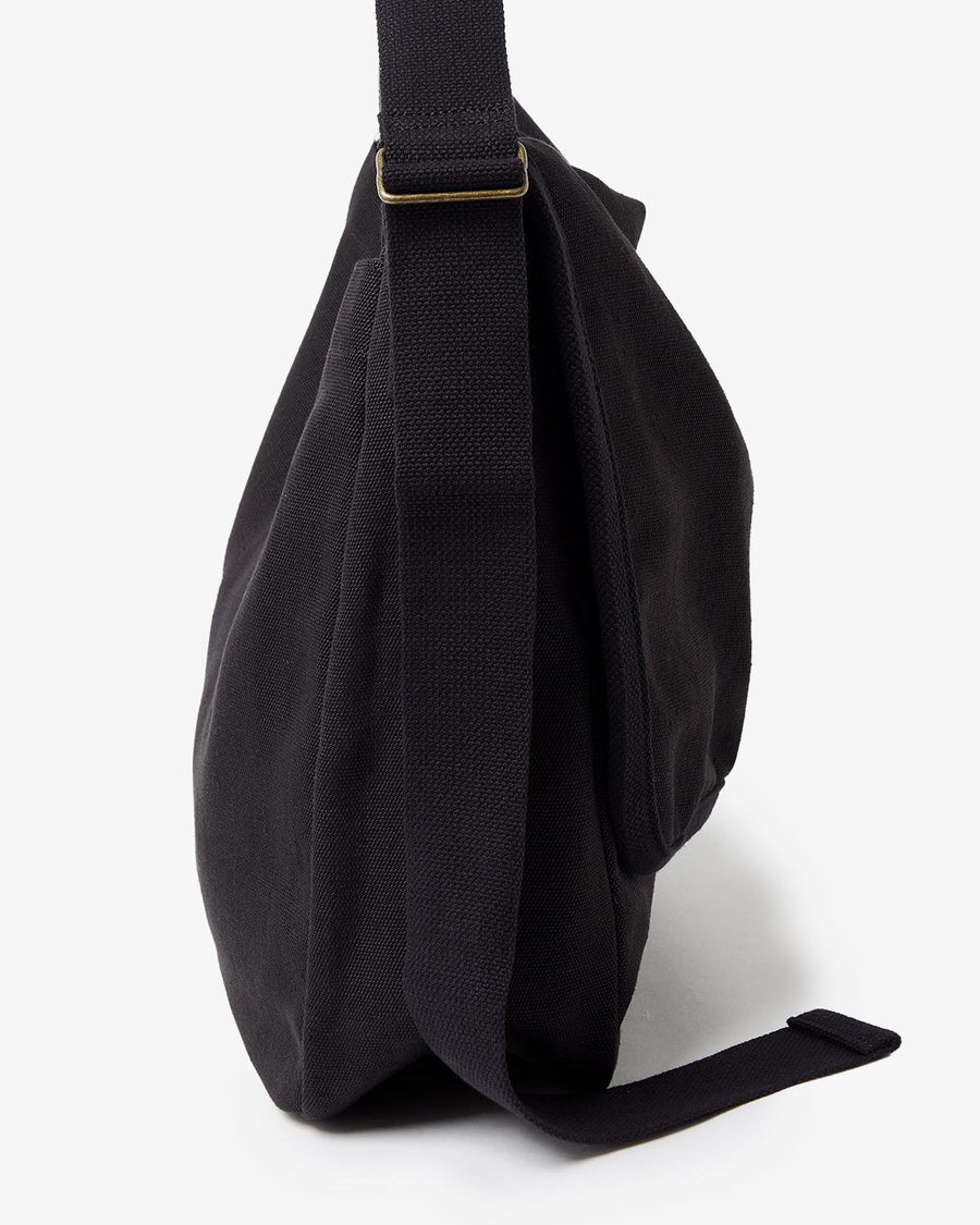しなやかなでハリ感もあるヘンプダック素材を使用した、シンプルなデザインのショルダーバッグです。